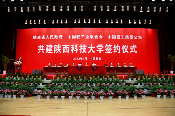 為了深入貫徹落實《國家中長期教育改革和發(fā)展規(guī)劃綱要(2010-2020年)》,大力實施科教興陜戰(zhàn)略和人才強省戰(zhàn)略,更好地保持和發(fā)揮我校輕化工為主的辦學特色和學科優(yōu)勢,全面加強校企合作,積極構建輕工行業(yè)科技攻關支撐平臺,加快推進我校高水平、有特色的教學研究型大學建設,積極爭取將我校納入“中西部高等教育振興計劃”, 417,“陜西省人民政府與中國輕工業(yè)聯合會、中國輕工集團公司共建陜西科技大學簽約儀式”在文體館隆重舉行。