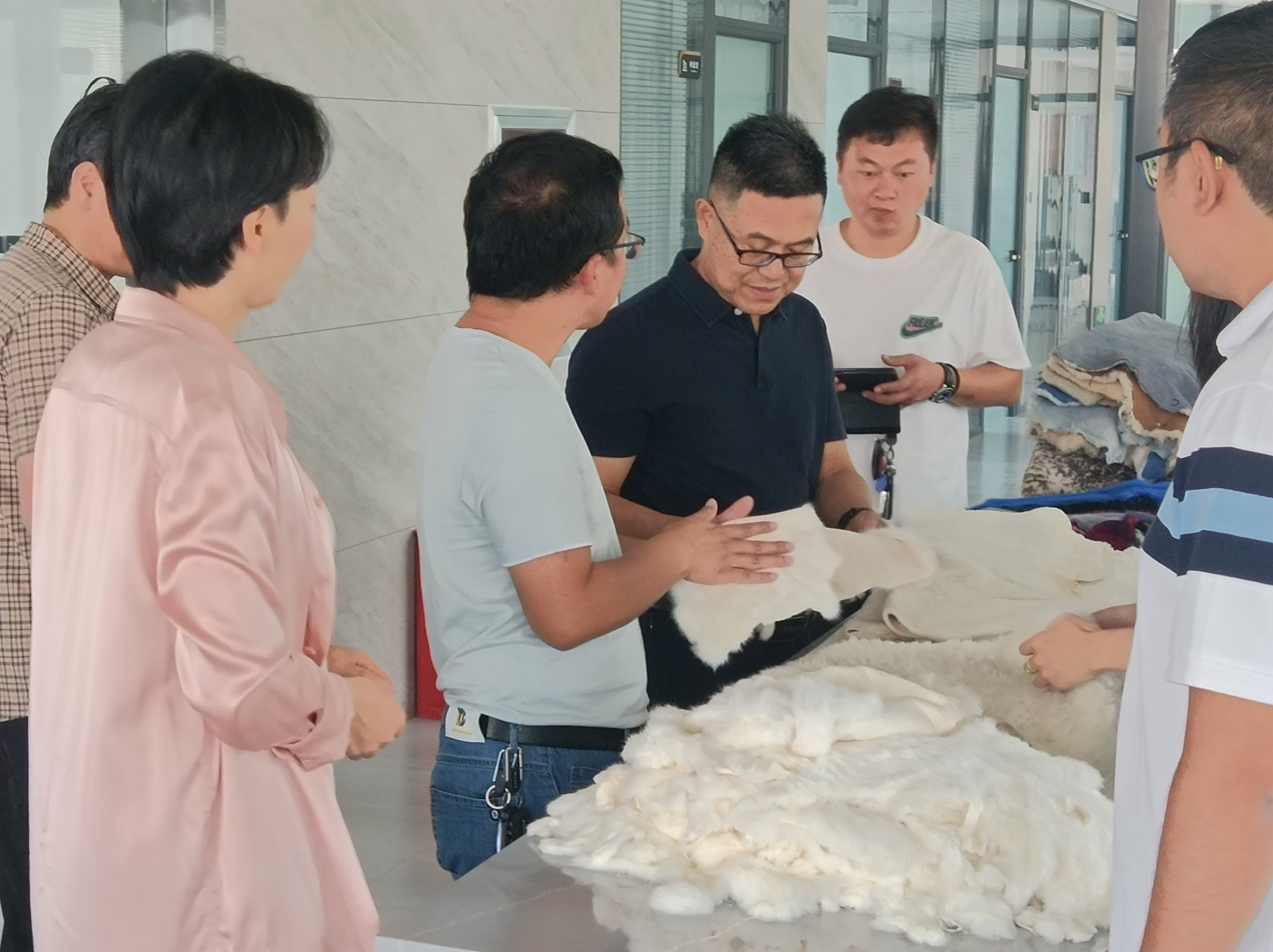 馬建中教授指導(dǎo)學(xué)生分析皮革