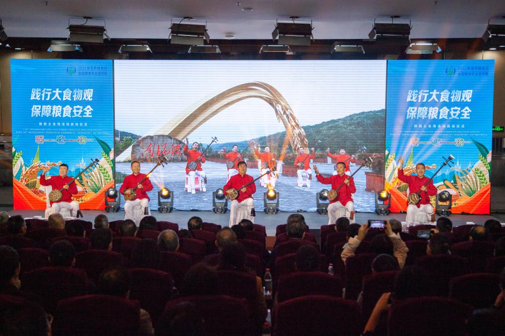 陜西省2023年世界糧食日和全國糧食安全宣傳周主會場活動于10月16日在我校圖書館報告廳舉行,本次活動由陜西省糧食和物資儲備局、省農業(yè)農村廳、省教育廳、省科學技術廳、省婦聯(lián)、陜西科技大學共同主辦,2023年全國糧食安全宣傳周主題為“踐行大食物觀 保障糧食安全”。校長李志健會見了與會嘉賓,副校長黃劍鋒出席活動并代表學校致辭。省發(fā)改委黨組成員、省糧食和物資儲備局局長楊林,省科技工委委員、省科學技術廳二級巡視員郭杰,省婦女聯(lián)合會黨組成員、副主席張曉燕,省教育廳發(fā)展規(guī)劃處二級調研員田保衛(wèi),省農業(yè)農村廳種植業(yè)處副處長張超,陜西糧農集團有限責任公司黨委書記、董事長劉利民,中儲糧西安分公司黨委常委、副總經理李健,中化現代農業(yè)(陜西)有限公司農產負責人焦高淇出席活動,我校食品科學與工程學院200余名師生代表參加了本次活動。