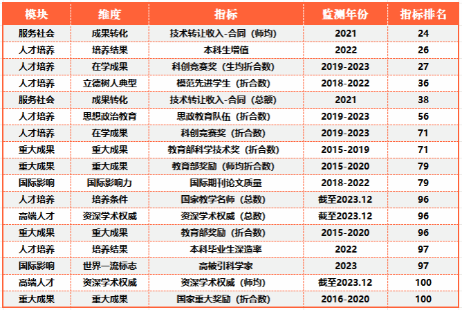 我校2024年“軟科中國(guó)大學(xué)”排名中位列全國(guó)前100位的指標(biāo)