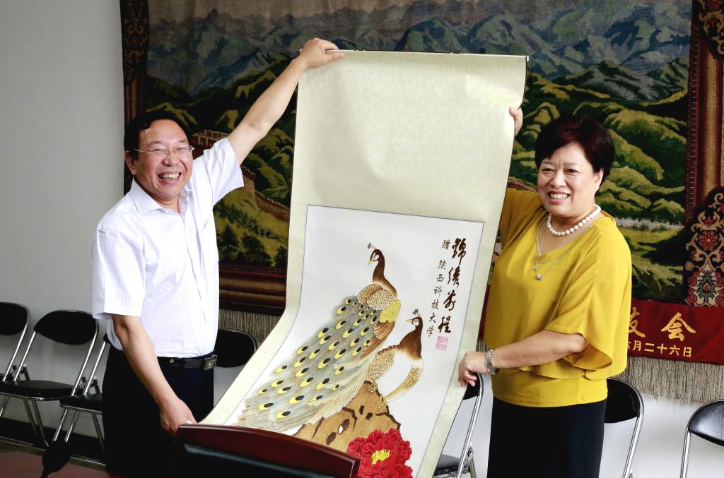 劉榮英代表南陽(yáng)理工學(xué)院向我校贈(zèng)送了極富南陽(yáng)文化特色的烙畫。