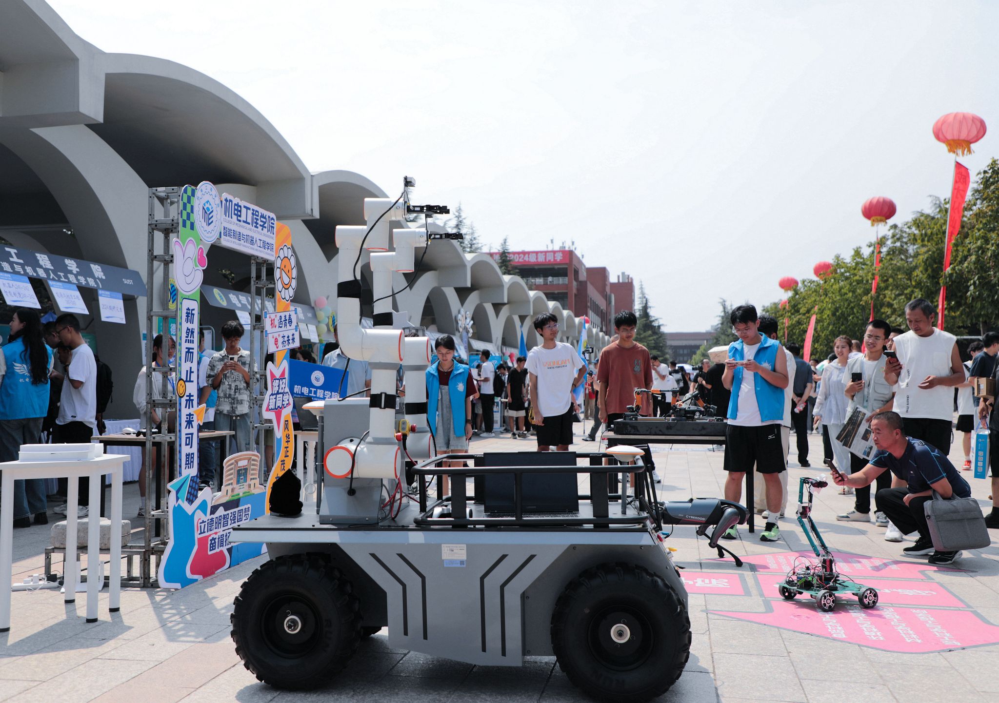為了給2024級新生提供更好的報到服務(wù),幫助學(xué)生直觀感受學(xué)科專業(yè),為新生留下美好回憶,各學(xué)院迎新接待點(diǎn)亮點(diǎn)頻出。物理與信息科學(xué)學(xué)院精心準(zhǔn)備了印有各新生班級、姓名的軍訓(xùn)臂章,現(xiàn)場發(fā)放;機(jī)電工程學(xué)院(智能制造與機(jī)器人工程學(xué)院)現(xiàn)場展示大學(xué)生科創(chuàng)作品,展現(xiàn)學(xué)科特色,體現(xiàn)專業(yè)特點(diǎn),吸引了眾多新生和家長駐足觀看;環(huán)境科學(xué)與工程學(xué)院(碳中和科學(xué)與技術(shù)學(xué)院)為新生準(zhǔn)備了“環(huán)境青年”手提袋,袋內(nèi)裝有學(xué)校地圖、學(xué)院簡介等資料和書簽等文創(chuàng)產(chǎn)品。