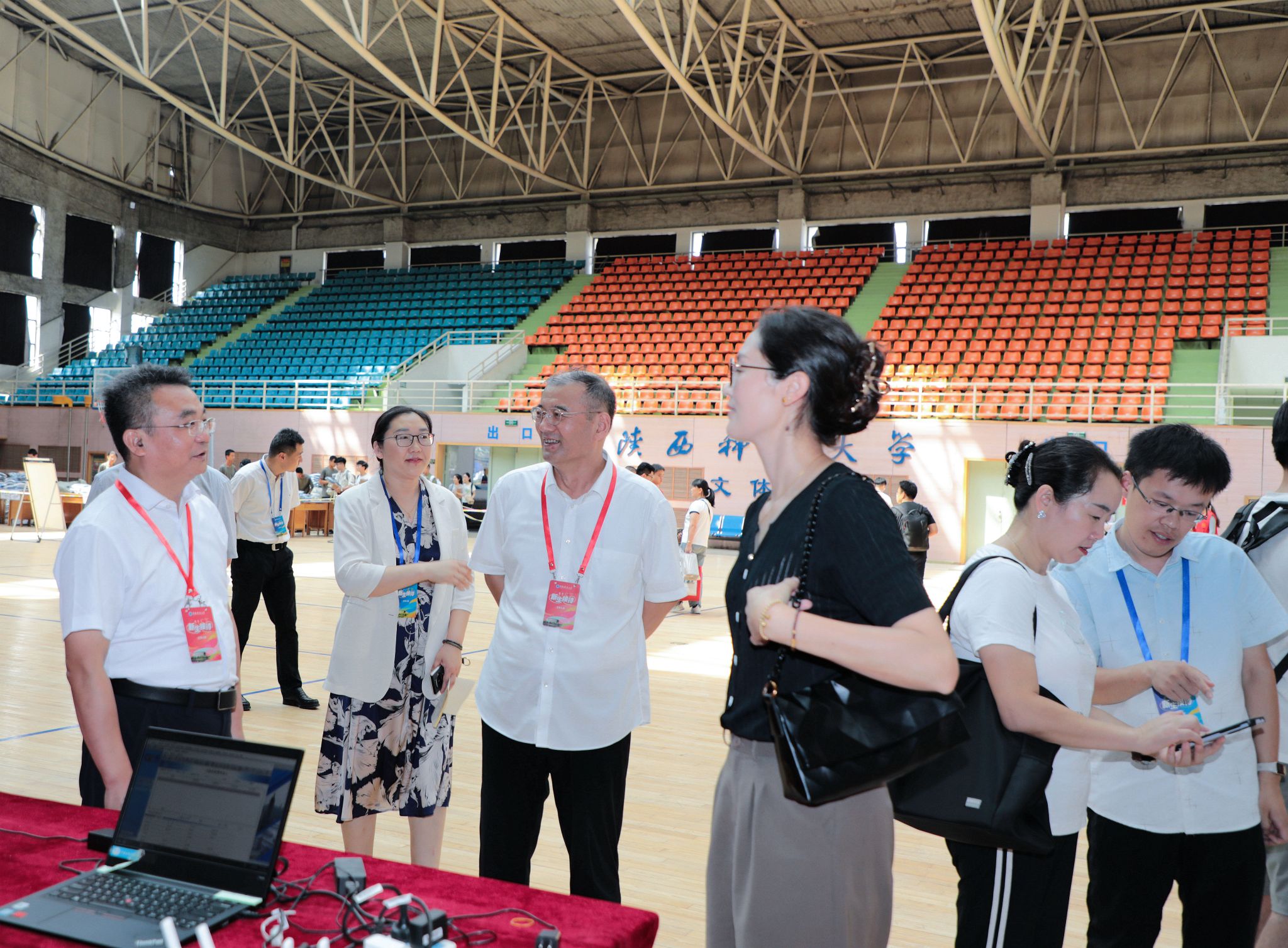校領(lǐng)導(dǎo)一行先后深入迎新總值班點(diǎn)及各學(xué)院迎新點(diǎn)、新生繳費(fèi)處、軍訓(xùn)服發(fā)放處、沁園餐廳、學(xué)生四公寓等地,同新生及家長、迎新工作人員親切交談,詳細(xì)詢問飲食、住宿等方面適應(yīng)情況及遇到的困難,現(xiàn)場回應(yīng)學(xué)生、家長關(guān)切的問題,認(rèn)真查看報到相關(guān)工作流程和各學(xué)院新生報到情況。