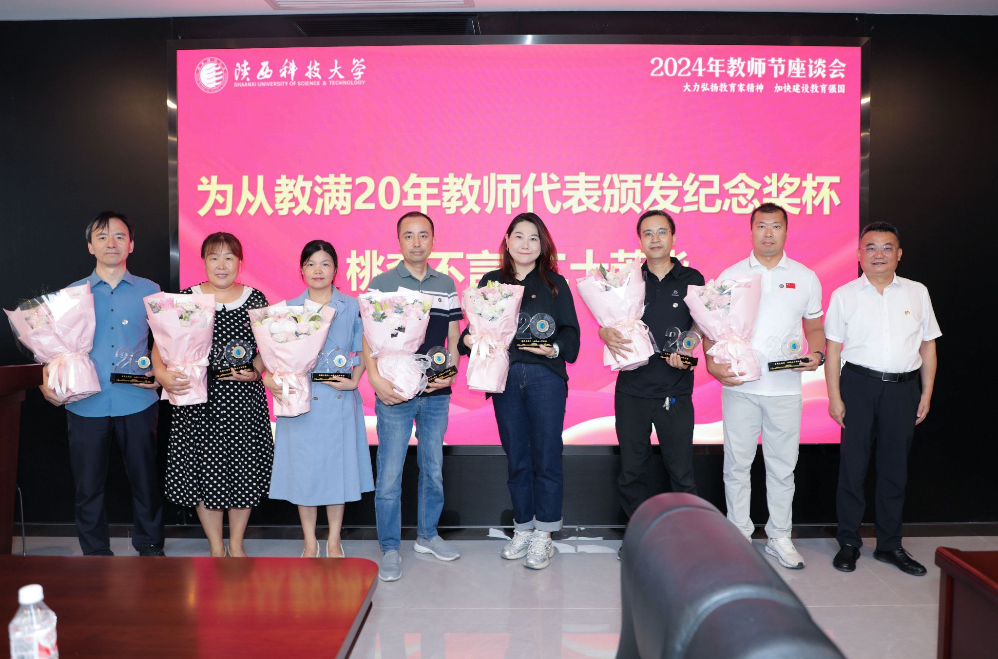 “剛開始站上講臺的時候,會覺得局促不安,每天想的最多的是‘我怎樣才能上完這節(jié)課’,上完課后會覺得很放松;現(xiàn)在每天想的是‘我該怎樣講,學生才能接受的多一些,該如何組織課堂,才能讓學生收獲比知識更多、可以受益終身的東西’。往后二十年里,我將與陜科大一起共同進步,不斷提升教學科研水平,助力學校實現(xiàn)復興騰飛夢想。”從教滿10年教師代表曹曉倩談了與學校一起成長的蛻變。