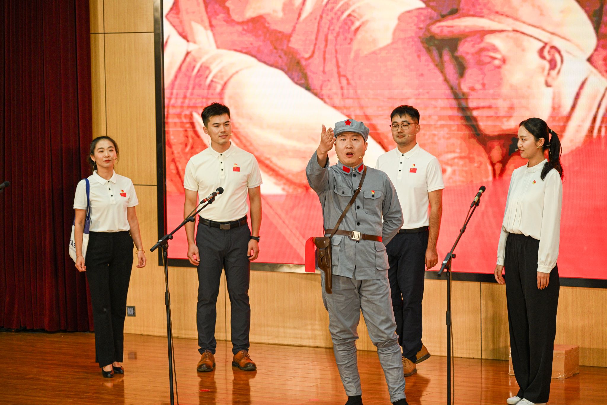 朗誦會氣氛熱烈,高潮迭起。朗誦者飽含深情,作品震撼人心。附中分會的朗誦作品《穿越時空的信》穿越了生死和時間,朗讀了黃繼光在戰(zhàn)場寫給母親的一封信、黃繼光的母親鄧芳芝寫給毛主席的信,帶領觀眾感受流淌在字里行間的家國情懷;食品學院分會的朗誦作品《信仰與傳承》表現(xiàn)了學院青年黨員參觀陜甘邊革命根據(jù)地照金紀念館,與革命先輩劉志丹開展跨時空對話的場景,通過這一堂生動的主題黨課,發(fā)出了科大食品人的鏗鏘誓言;機關分工的朗誦作品《等待》深情再現(xiàn)了“兩彈元勛”鄧稼先為新中國核事業(yè)隱姓埋名、以身許國,妻子許鹿希信守離別時的承諾,無怨無悔地等待了28年的心路歷程,致敬中國崛起征程背后忘我付出的科學巨人們;物理學院、材料學院、輕工學院分會的朗誦作品《師魂·國魂》《載著使命前行,共繪祖國輝煌畫卷》《追尋》中,老師們用飽含深情的話語,堅定地表達了廣大教師大力弘揚踐行教育家精神、加快建設教育強國的使命感、責任感,展現(xiàn)了立志譜寫新時代教育高質量發(fā)展新篇章的堅實信念。