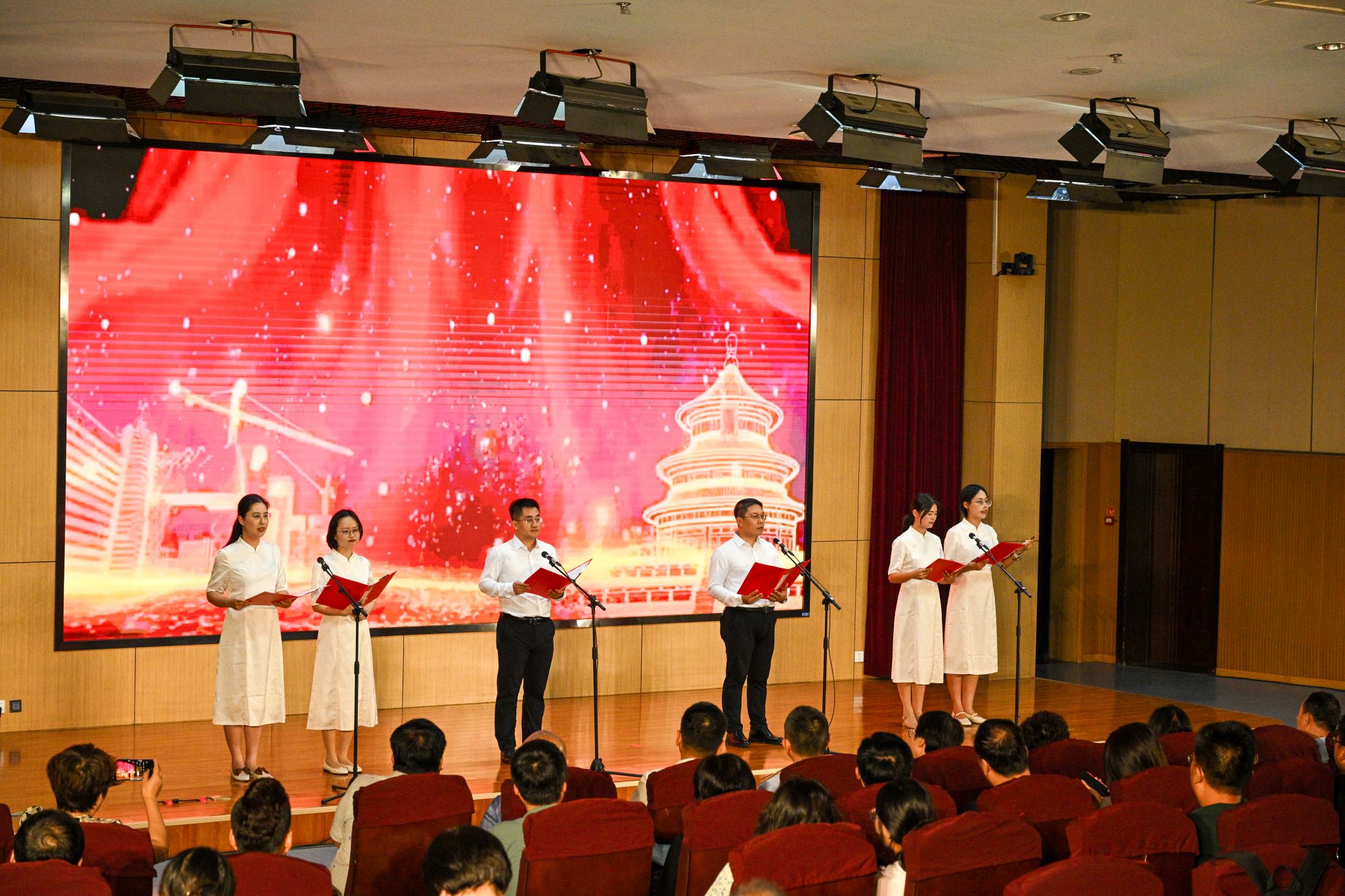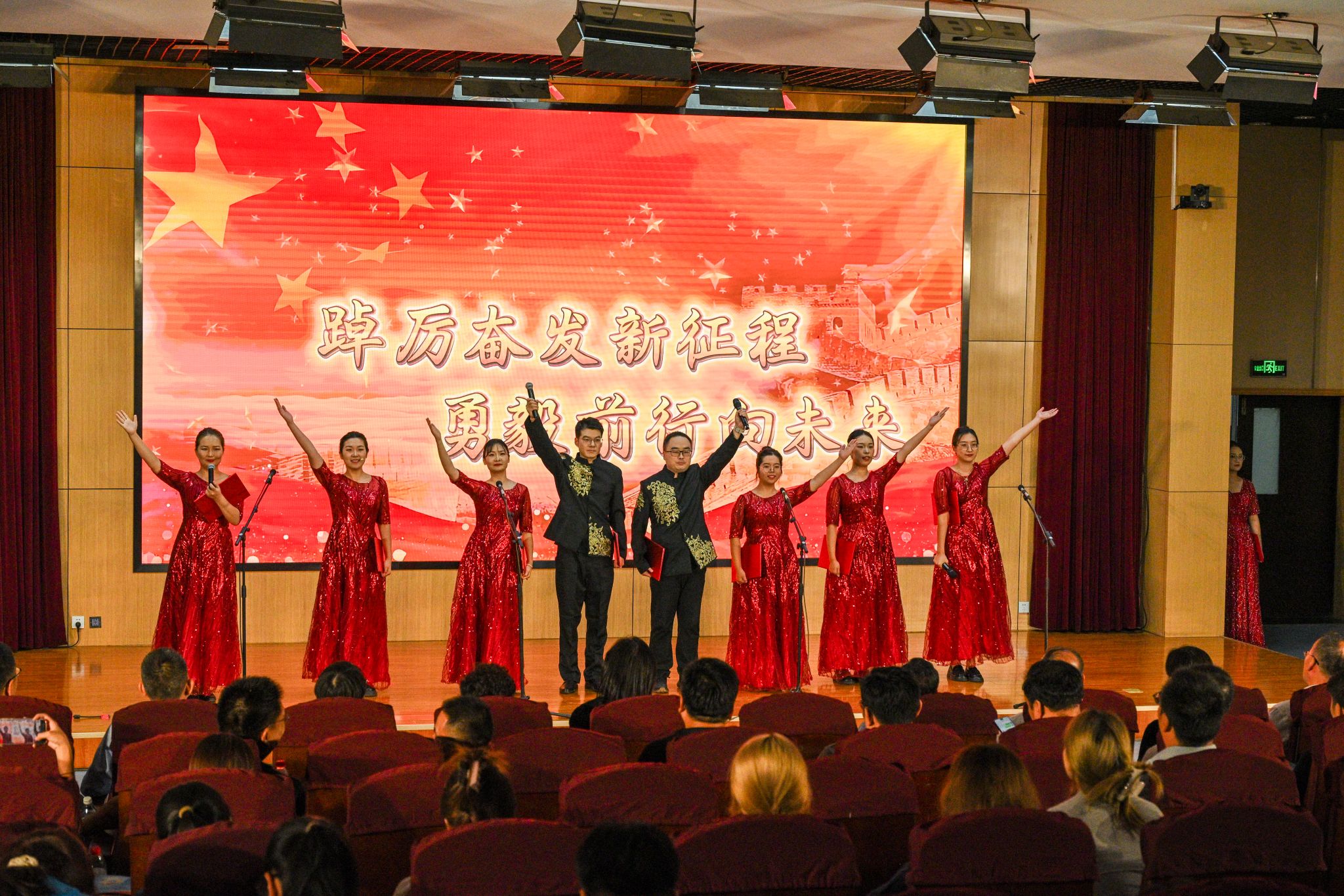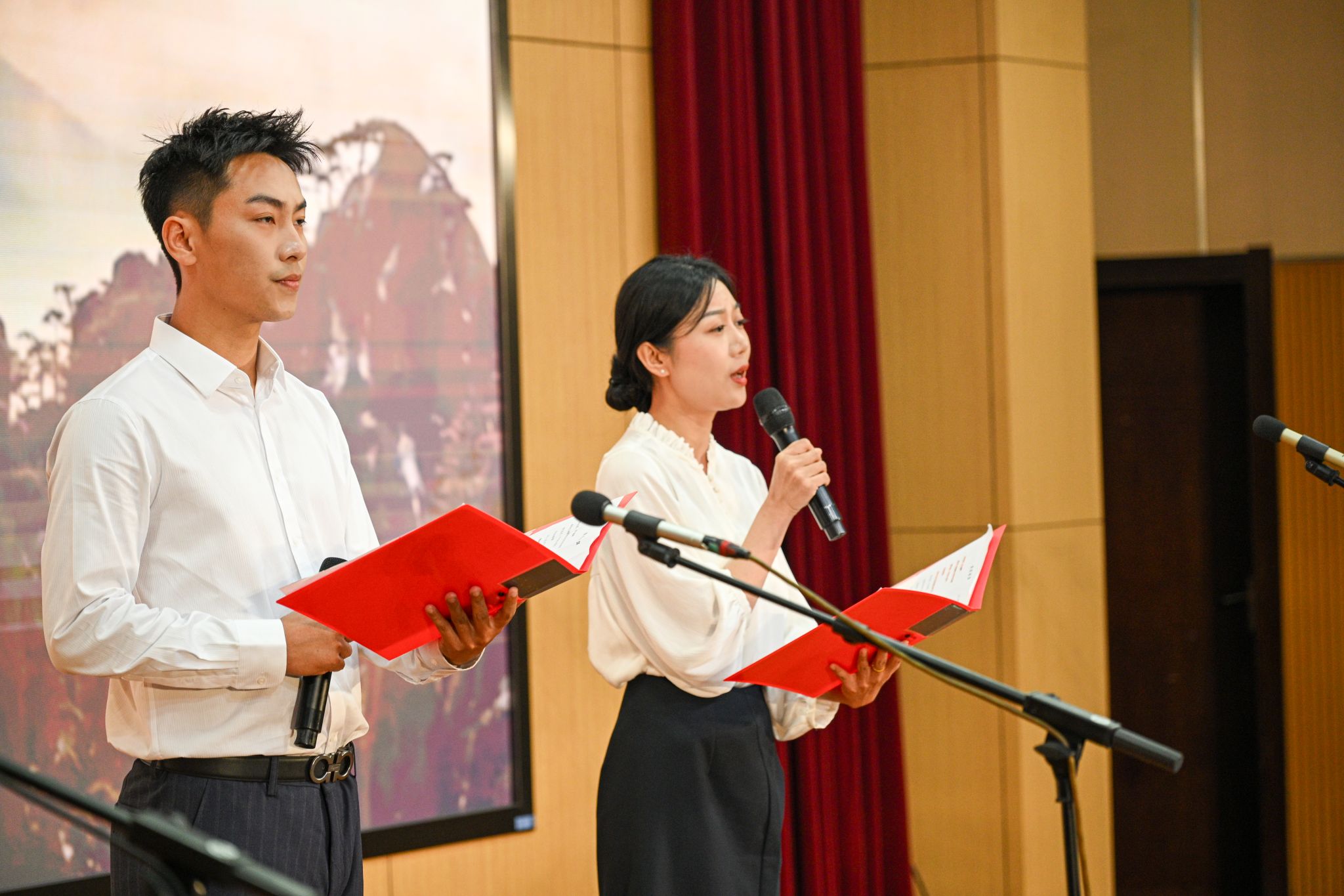 9月26日晚,由校工會主辦,宣傳部、校團委協(xié)辦的“奮楫揚帆新時代 凝心聚力向未來”慶祝中華人民共和國成立75周年教職工主題朗誦會在圖書館學術報告廳精彩上演。校長李志健,校黨委副書記王道安,校黨委副書記、紀委書記、監(jiān)察專員羅瑩,副校長黃海峙出席朗誦會。來自20個分會的教職工演員以多樣的表現(xiàn)形式深情朗誦,共同傾訴著對偉大祖國最深沉的愛。校黨委委員,學校各職能部門、各學院主要負責人,師生代表近五百人觀看了現(xiàn)場演出。