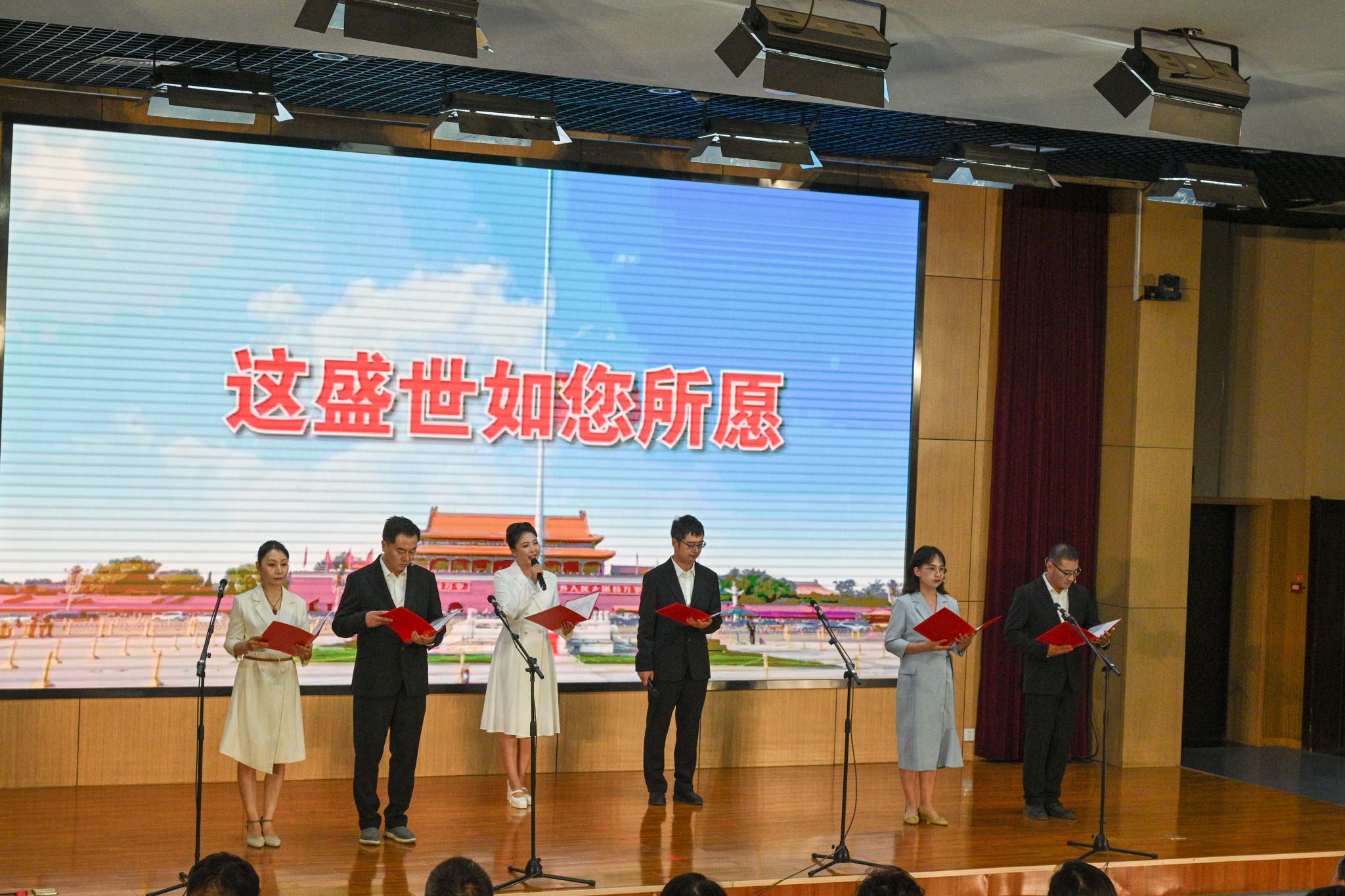 朗誦會通過浴血奮斗、矢志報國、逐夢復興三個篇章,熱情謳歌新中國成立75年來經濟社會發(fā)展取得的光輝成就,充分表達了廣大教職員工堅定不移聽黨話、矢志不渝跟黨走的堅定信念和對偉大祖國的禮贊與祝福,有力激發(fā)全體科大人愛黨愛國愛社會主義的巨大熱情,進一步凝聚全校師生錨定學校第三次黨代會目標任務,砥礪奮進“復興期”的磅礴力量。