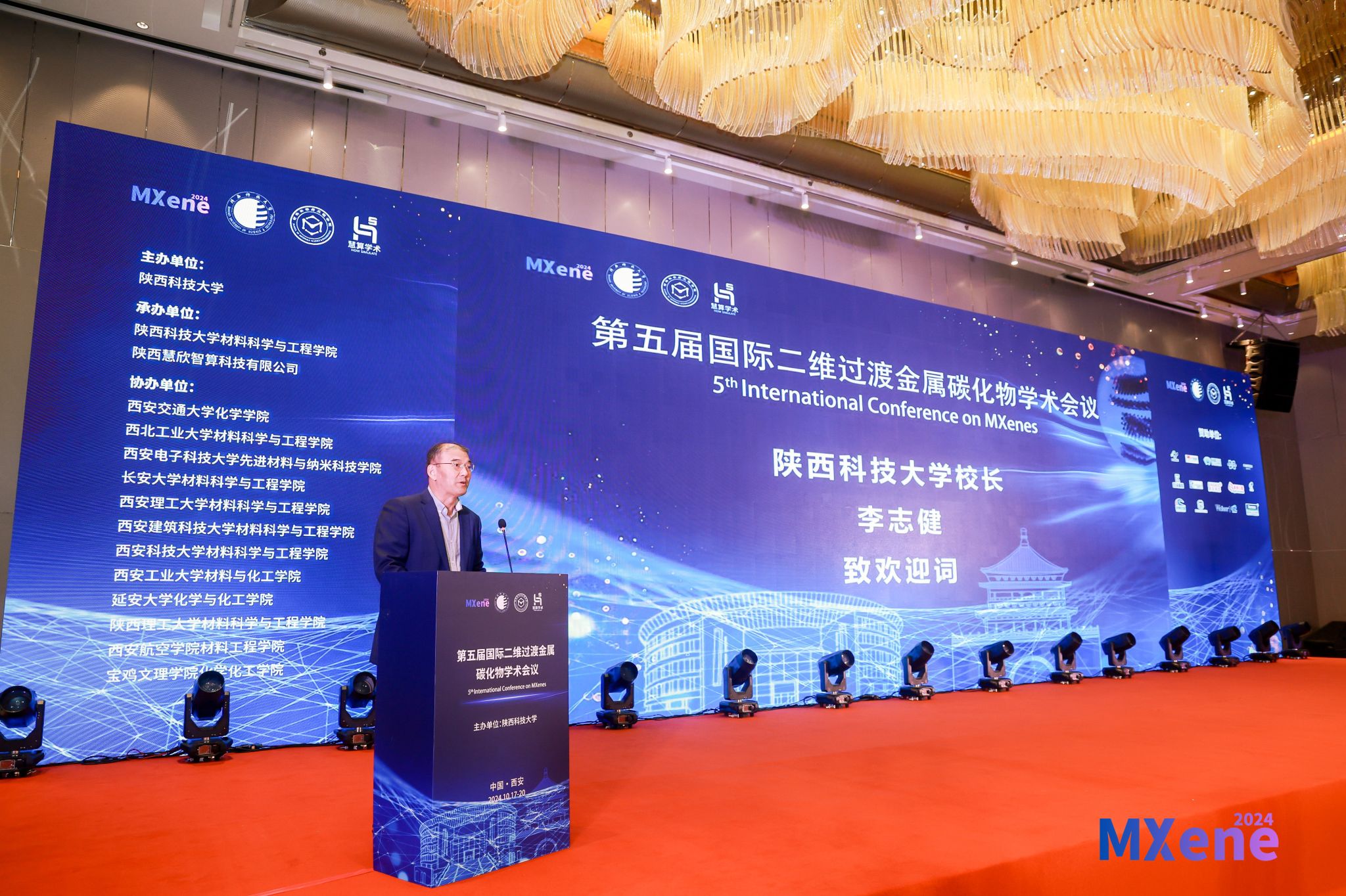 10月17至20日,來自全球MXene材料研究領(lǐng)域的150家科研院所及高等院校的近500名專家學(xué)者齊聚古都西安,參加第五屆國際二維過渡金屬碳化物學(xué)術(shù)會(huì)議。本次國際會(huì)議由陜西科技大學(xué)主辦,西安交通大學(xué)、西北工業(yè)大學(xué)等12所在陜高校協(xié)辦,由美國德雷塞爾大學(xué)Yury Gogotsi 教授和陜西科技大學(xué)朱建鋒教授共同擔(dān)任大會(huì)主席。我校校長李志健教授出席會(huì)議開幕式并致辭。