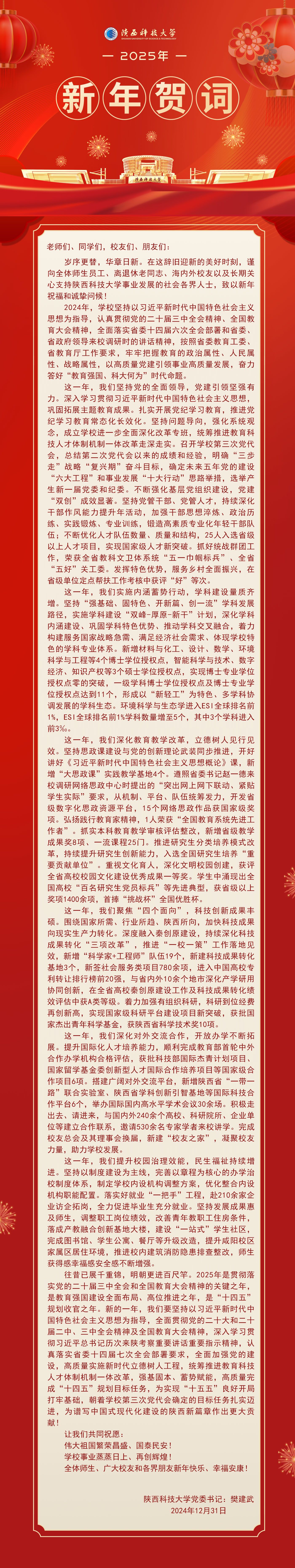 陜西科技大學(xué)2025年新年賀詞