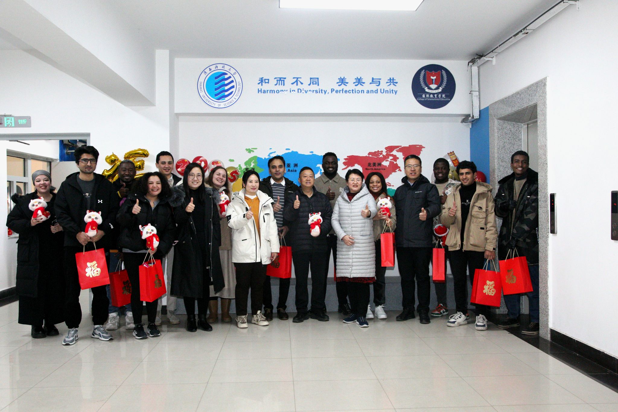 在國際教育公寓,黃劍鋒為留校國際學(xué)生發(fā)放了新春禮包,并送去新春的美好祝福,希望留學(xué)生們積極搭建起友誼橋梁,為推動文化交流,構(gòu)建人類命運共同體貢獻力量。
