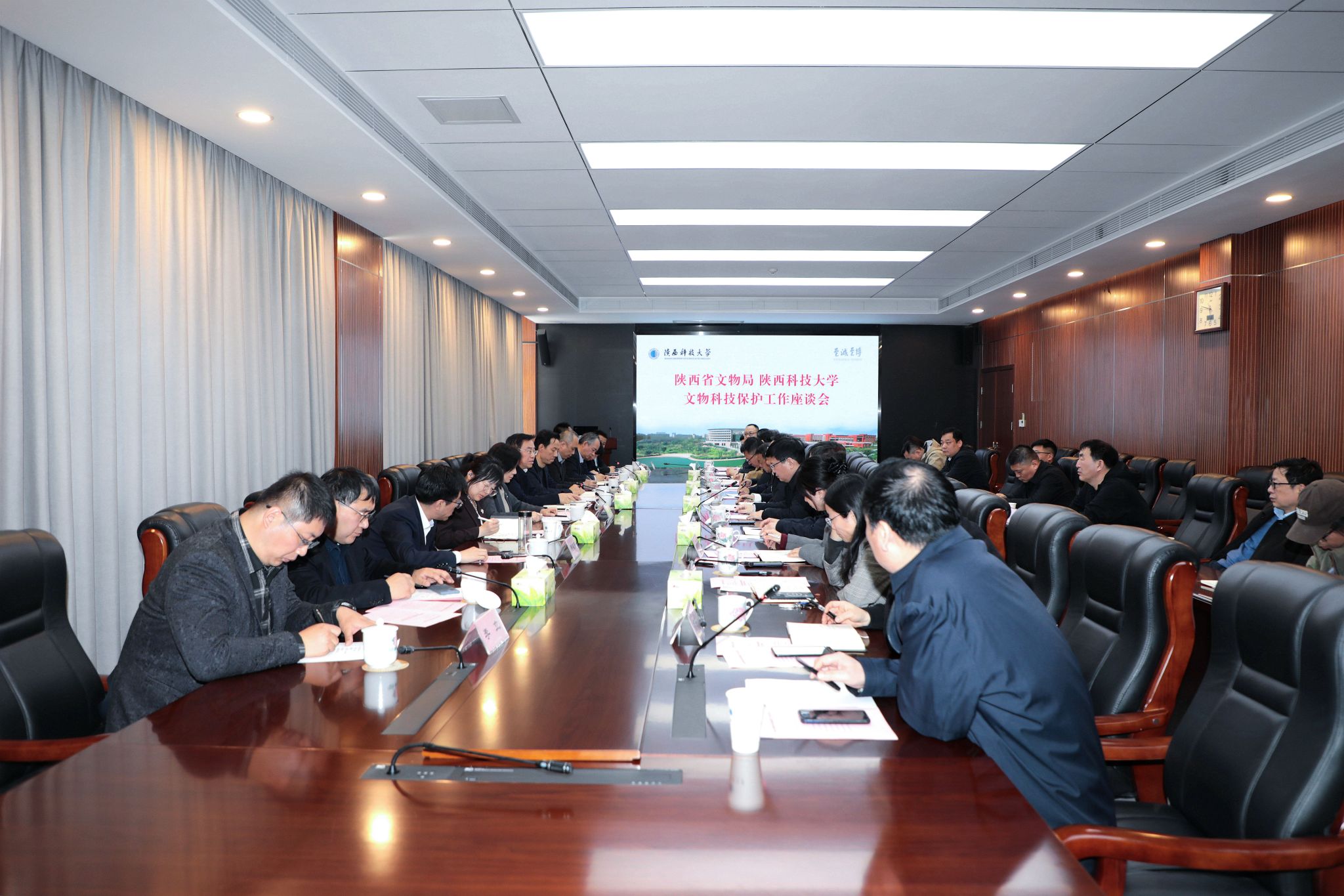 3月18日,陜西省文物局與陜西科技大學(xué)召開文物科技保護(hù)創(chuàng)新工作座談會(huì)。省文物局黨組書記、局長賈強(qiáng),陜西科技大學(xué)黨委書記樊建武、校長黃劍鋒出席會(huì)議并致辭。省文物局副局長王潤錄介紹了陜西文物科技保護(hù)工作總體情況,并宣布陜西科技大學(xué)為新一屆陜西文物保護(hù)科技創(chuàng)新聯(lián)盟輪值主席單位。省文物局機(jī)關(guān)處室、在陜各國家文物局重點(diǎn)科研基地掛靠單位主要負(fù)責(zé)同志和基地主任,陜西科技大學(xué)相關(guān)院系主要負(fù)責(zé)同志參加會(huì)議。會(huì)議由副校長陸趙情主持。