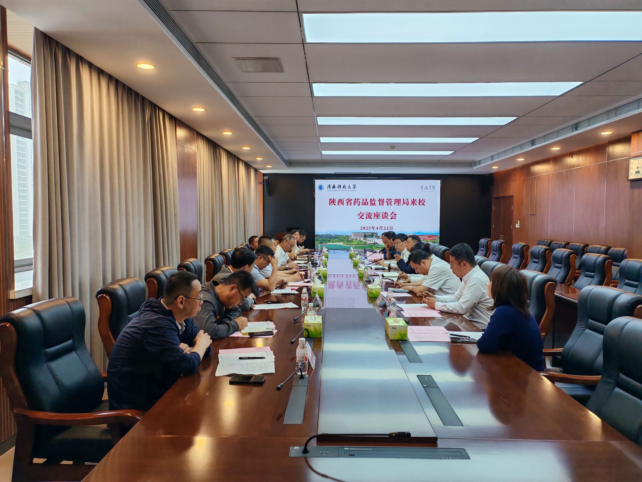 4月22日,陜西省市場監(jiān)督管理局黨組成員、省藥品監(jiān)督管理局黨組書記、局長馮鋒帶隊來校調(diào)研交流。校長黃劍鋒出席座談會并致辭,副校長陸趙情主持座談會。