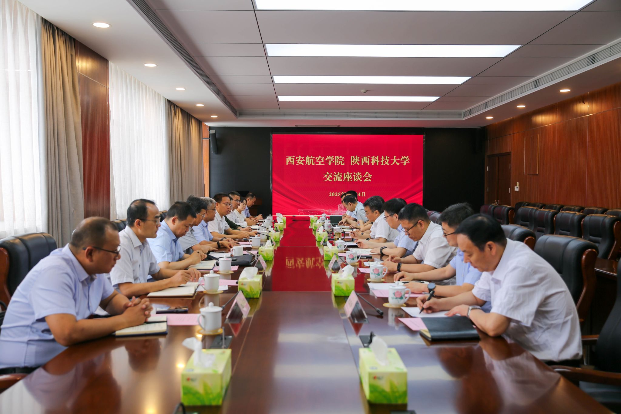 6月24日,西安航空學(xué)院黨委書(shū)記祁玉龍、校長(zhǎng)蒲永平一行來(lái)陜西科技大學(xué)調(diào)研交流,并簽署合作協(xié)議。陜西科技大學(xué)黨委書(shū)記樊建武主持座談會(huì),校長(zhǎng)黃劍鋒出席座談會(huì)并致辭。西安航空學(xué)院副校長(zhǎng)宋文學(xué)、許文丹,陜西科技大學(xué)副校長(zhǎng)陸趙情、馬力參加座談交流。