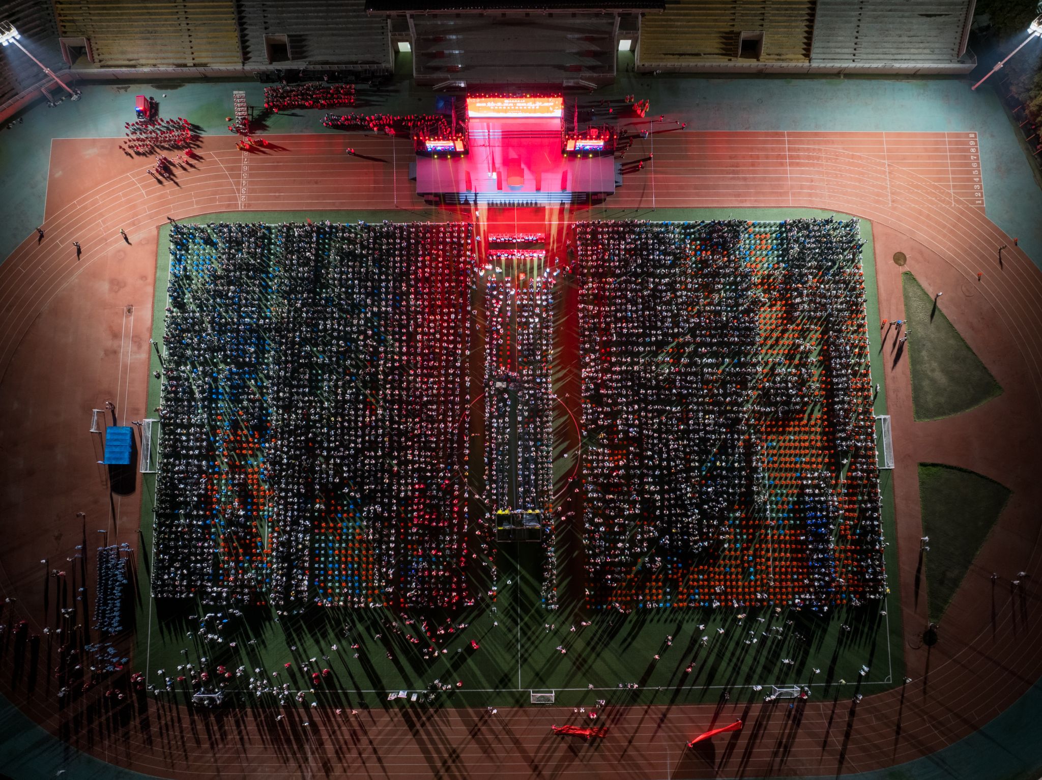 為慶祝中華人民共和國(guó)成立76周年,涵育校園文化、弘揚(yáng)大學(xué)精神,9月29日晚,陜西科技大學(xué)在田徑場(chǎng)舉行“賡續(xù)輕工薪火·唱響遠(yuǎn)航新聲”校歌傳唱活動(dòng)。黨委書記樊建武,校長(zhǎng)黃劍鋒,黨委副書記李學(xué)軍,副校長(zhǎng)黃海峙、馬力,與各學(xué)院師生代表、2025級(jí)新生共同參與活動(dòng)。
