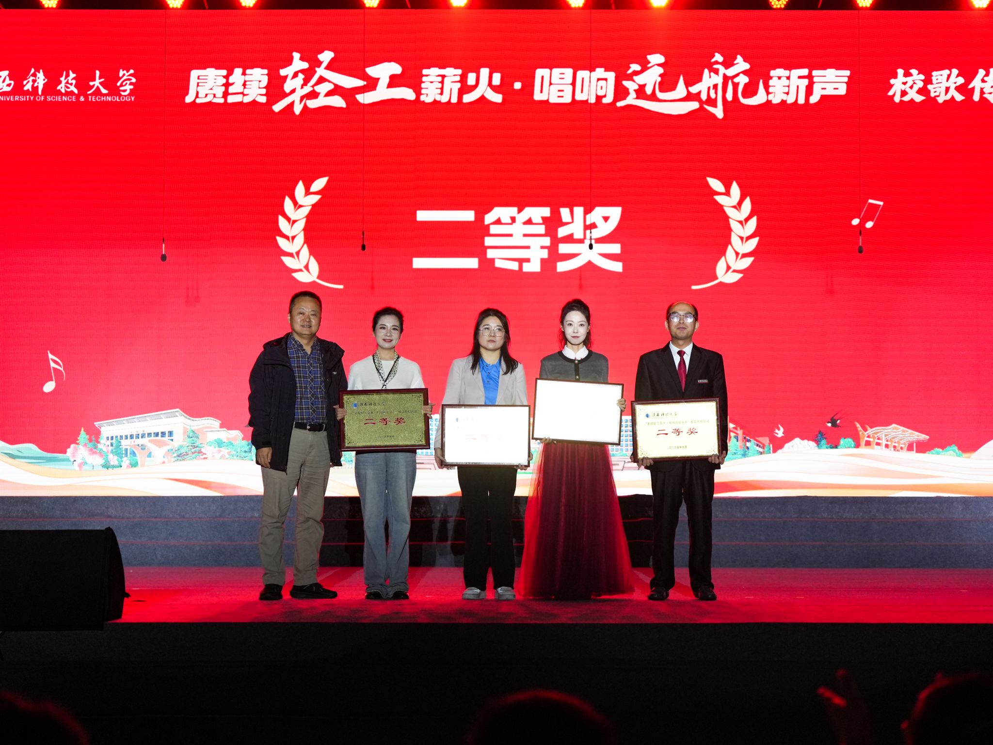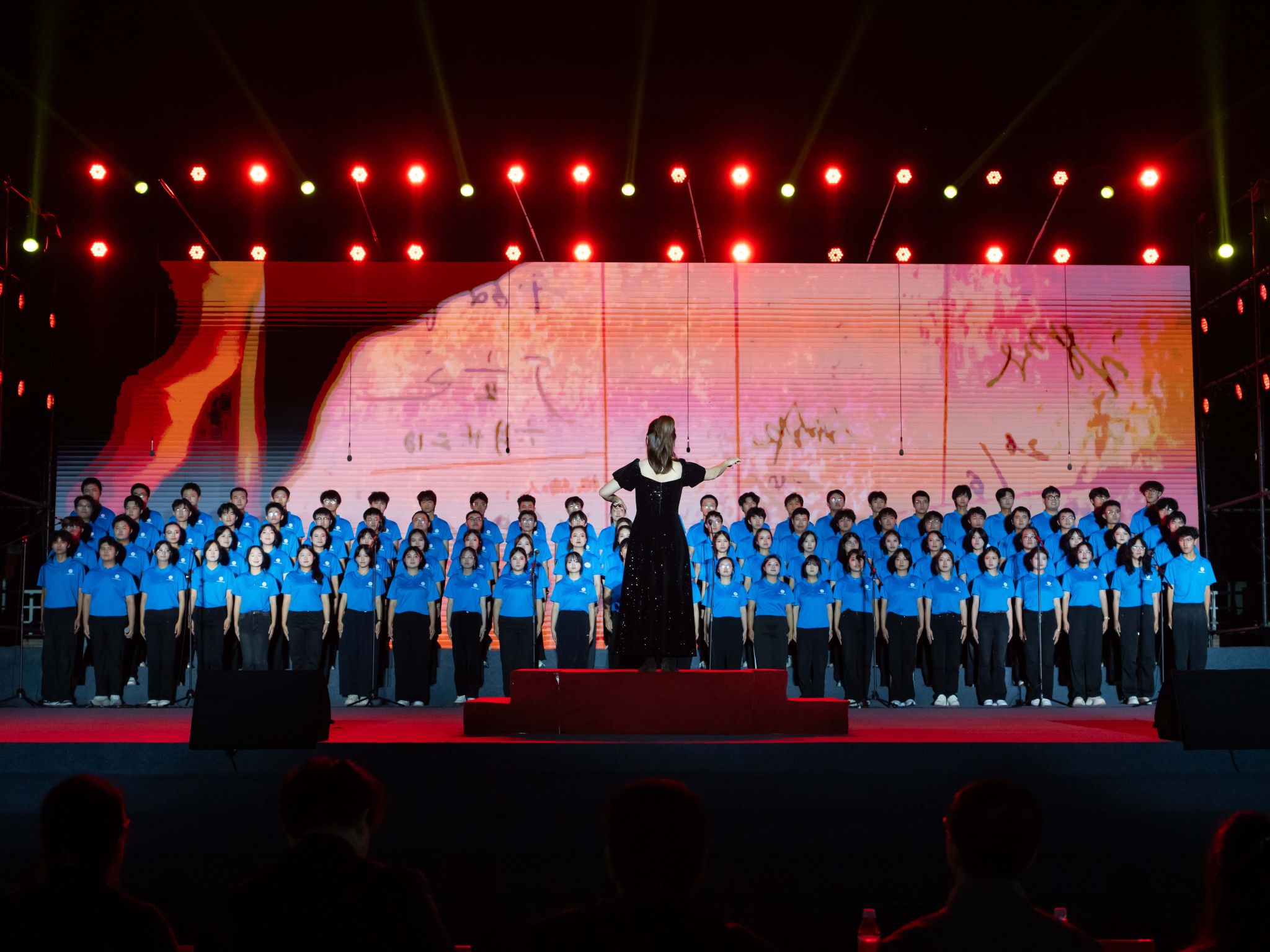 同一首校歌凝聚信念,萬(wàn)千種情懷由曲目訴說(shuō)。在自選曲目環(huán)節(jié),各學(xué)院的表演異彩紛呈:阿爾斯特學(xué)院的《銘記》追溯民族精神,禮贊革命先烈;環(huán)境科學(xué)與工程學(xué)院的《走向復(fù)興》展現(xiàn)中華兒女奮發(fā)向前、矢志報(bào)國(guó)的昂揚(yáng)姿態(tài);數(shù)學(xué)與數(shù)據(jù)科學(xué)學(xué)院的《國(guó)家》詮釋“家是最小國(guó),國(guó)是千萬(wàn)家”的深沉內(nèi)涵;食品科學(xué)與工程學(xué)院的《保衛(wèi)黃河》弘揚(yáng)偉大抗戰(zhàn)精神,抒發(fā)建設(shè)一流學(xué)院的堅(jiān)定信念;電子信息與人工智能學(xué)院的《祖國(guó)不會(huì)忘記》展現(xiàn)以智能技術(shù)書寫“智慧輕工”新篇章的進(jìn)取精神;物理與信息科學(xué)學(xué)院的《強(qiáng)軍戰(zhàn)歌》唱響六十余載的學(xué)科底蘊(yùn)與青春力量;文化與教育學(xué)院的《祖國(guó)不會(huì)忘記》致敬教育工作者在三尺講臺(tái)的耕耘和堅(jiān)守;馬克思主義學(xué)院的《國(guó)際歌》《保衛(wèi)黃河》聯(lián)唱呈現(xiàn)從歷史走向復(fù)興的壯闊畫卷,傳遞堅(jiān)定信仰;設(shè)計(jì)與藝術(shù)學(xué)院的《我愛(ài)你中國(guó)》以歌聲表達(dá)對(duì)祖國(guó)的熱愛(ài)與祝福;化學(xué)與化工學(xué)院的《理想》歌頌青年向光而行的無(wú)畏果敢;輕工科學(xué)與工程學(xué)院的《共筑中國(guó)夢(mèng)》抒發(fā)深耕產(chǎn)業(yè)、逐夢(mèng)未來(lái)的初心;材料科學(xué)與工程學(xué)院結(jié)合校史校情創(chuàng)新改編《上春山》,以輕松旋律致敬科研工作者勇攀高峰的執(zhí)著精神;經(jīng)濟(jì)與管理學(xué)院的《祖國(guó)不會(huì)忘記》唱出“西遷人”無(wú)私奉獻(xiàn)、“經(jīng)世濟(jì)民”的擔(dān)當(dāng);電氣與控制工程學(xué)院的《我和我的祖國(guó)》傳遞對(duì)輕工事業(yè)傳承之志、對(duì)遠(yuǎn)航新程向往之心;機(jī)電工程學(xué)院的《在燦爛陽(yáng)光下》傳遞出堅(jiān)守匠心、實(shí)干報(bào)國(guó)的信念;國(guó)際教育學(xué)院的《“一帶一路”走起來(lái)》,以歌聲與服飾秀展現(xiàn)文明互鑒、友誼長(zhǎng)存。校歌《遠(yuǎn)航》曲作者陳大明教授對(duì)整場(chǎng)傳唱活動(dòng)作出精彩點(diǎn)評(píng)?;顒?dòng)尾聲,全場(chǎng)師生在指揮學(xué)博士王曉明老師帶領(lǐng)下齊唱《我和我的祖國(guó)》,共慶新中國(guó)76周年華誕,表達(dá)奮進(jìn)新時(shí)代的堅(jiān)定決心。