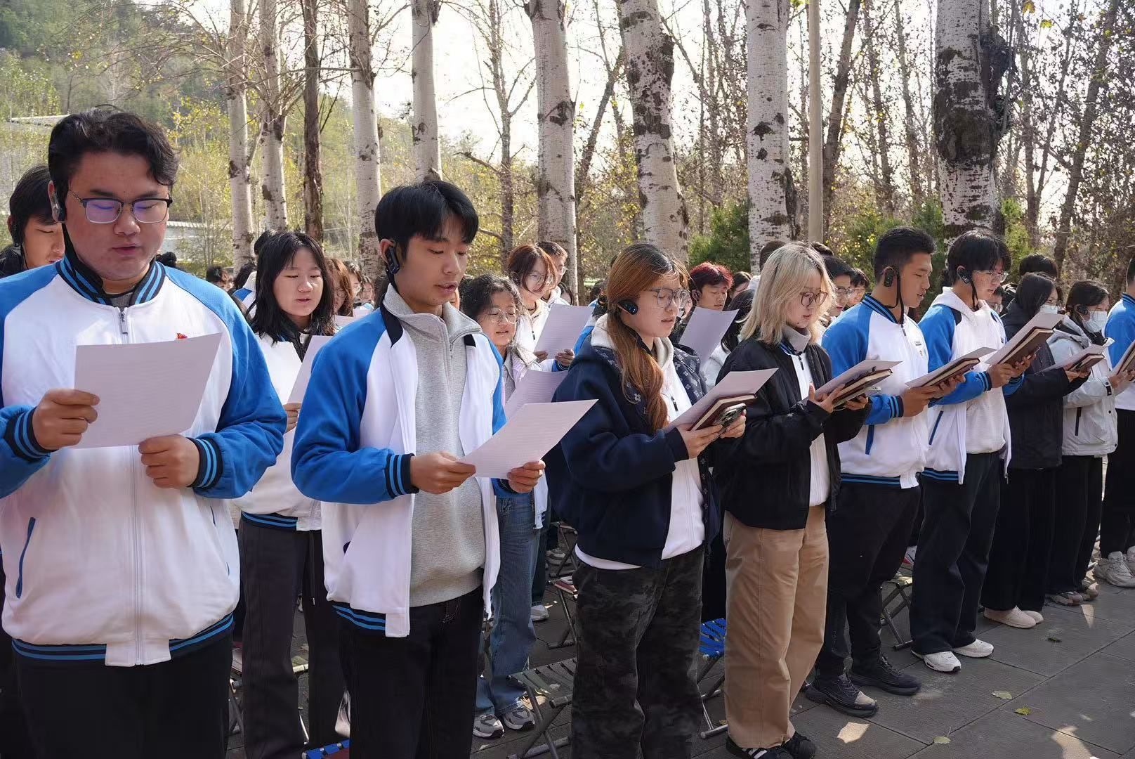 研學(xué)最后一站,師生們登上巍巍寶塔山。在莊嚴(yán)肅穆的黨旗廣場(chǎng)上,師生黨員與團(tuán)員青年重溫入黨誓詞與入團(tuán)誓詞,俯瞰延安城壯闊的景象,歷史榮光與時(shí)代新貌在此交匯,為這場(chǎng)初心之旅畫(huà)上了圓滿的句號(hào)。