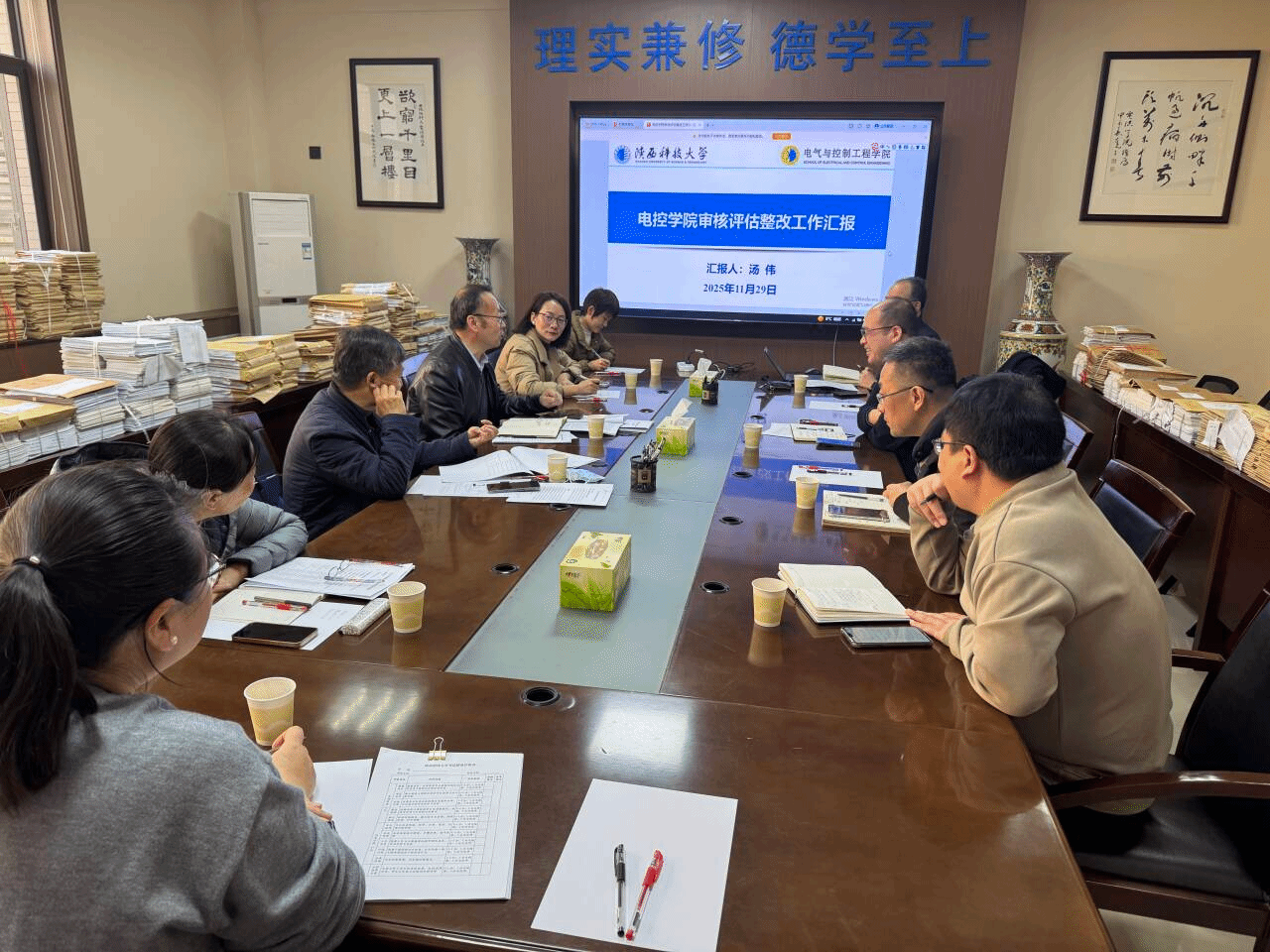 校領(lǐng)導(dǎo)在驗收自查工作中指出,學(xué)校以O(shè)BE理念為指導(dǎo),認真落實審核評估專家組意見,系統(tǒng)部署、扎實推進,形成了領(lǐng)導(dǎo)有力、全員參與、舉措務(wù)實、效果良好的工作局面,為人才培養(yǎng)質(zhì)量持續(xù)提升奠定了堅實基礎(chǔ)。圍繞立德樹人根本任務(wù),堅持德育為先、五育并舉,對照《新時代陜西省立德樹人工作指南》制定學(xué)校重點任務(wù)清單及教育實踐清單,實施“大思政課”建設(shè)工作方案,以“大輕工”建設(shè)為重點,著力打造“領(lǐng)導(dǎo)干部講思政第一課”“校歌傳唱”“網(wǎng)絡(luò)思政”“三秦學(xué)子圣地行”等網(wǎng)絡(luò)和實踐育人品牌,文化育人氛圍日益濃厚,“三全育人”格局基本形成。以學(xué)生為中心、產(chǎn)出為導(dǎo)向、持續(xù)改進為核心的OBE理念深入人心,黨政同抓、一體擔(dān)當(dāng),黨組織全面引領(lǐng)、校領(lǐng)導(dǎo)責(zé)任嵌套、各部門協(xié)同聯(lián)動、校級-院級-基層三級貫通、全員參與的教育教學(xué)治理體系基本建立,覆蓋教學(xué)督導(dǎo)、課程負責(zé)人和教學(xué)指導(dǎo)委員會的教育教學(xué)全過程質(zhì)量監(jiān)控閉環(huán)不斷健全,積極對接社會需求、服務(wù)地方經(jīng)濟發(fā)展,學(xué)科專業(yè)動態(tài)調(diào)整機制基本形成,師資結(jié)構(gòu)和師資質(zhì)量持續(xù)優(yōu)化。常態(tài)化開展數(shù)據(jù)監(jiān)測和評價體系協(xié)同聯(lián)動的長效體制機制基本建立,追求卓越的“至誠至博”質(zhì)量文化內(nèi)涵建設(shè)成效顯現(xiàn),校院兩級質(zhì)量保障體系不斷完善。各學(xué)院立足自身實際,不斷探索并形成了富有特色、路徑清晰的育人模式與發(fā)展格局,有效激活基層教學(xué)組織活力,有力推動教育教學(xué)改革持續(xù)走向深入。