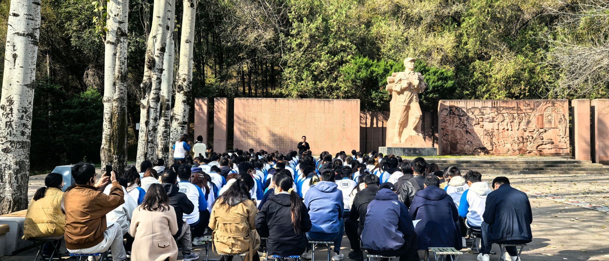 深秋時(shí)節(jié),陜西科技大學(xué)師生代表踏上了革命圣地延安的紅色熱土,清晨的楊家?guī)X革命舊址,師生們聆聽(tīng)起現(xiàn)場(chǎng)黨課;巍巍寶塔山上,青年學(xué)子面向黨旗重溫誓詞;往返途中,學(xué)員們自發(fā)組織起紅歌傳唱,《山丹丹開(kāi)花紅艷艷》《南泥灣》的旋律一路飄揚(yáng),將移動(dòng)車廂變成了生動(dòng)的紅色課堂。課程并未隨著下課鈴聲而結(jié)束,而是化身為一張張生動(dòng)的“實(shí)踐地圖”,指引新生在行走的課堂里感悟初心與使命的重量。