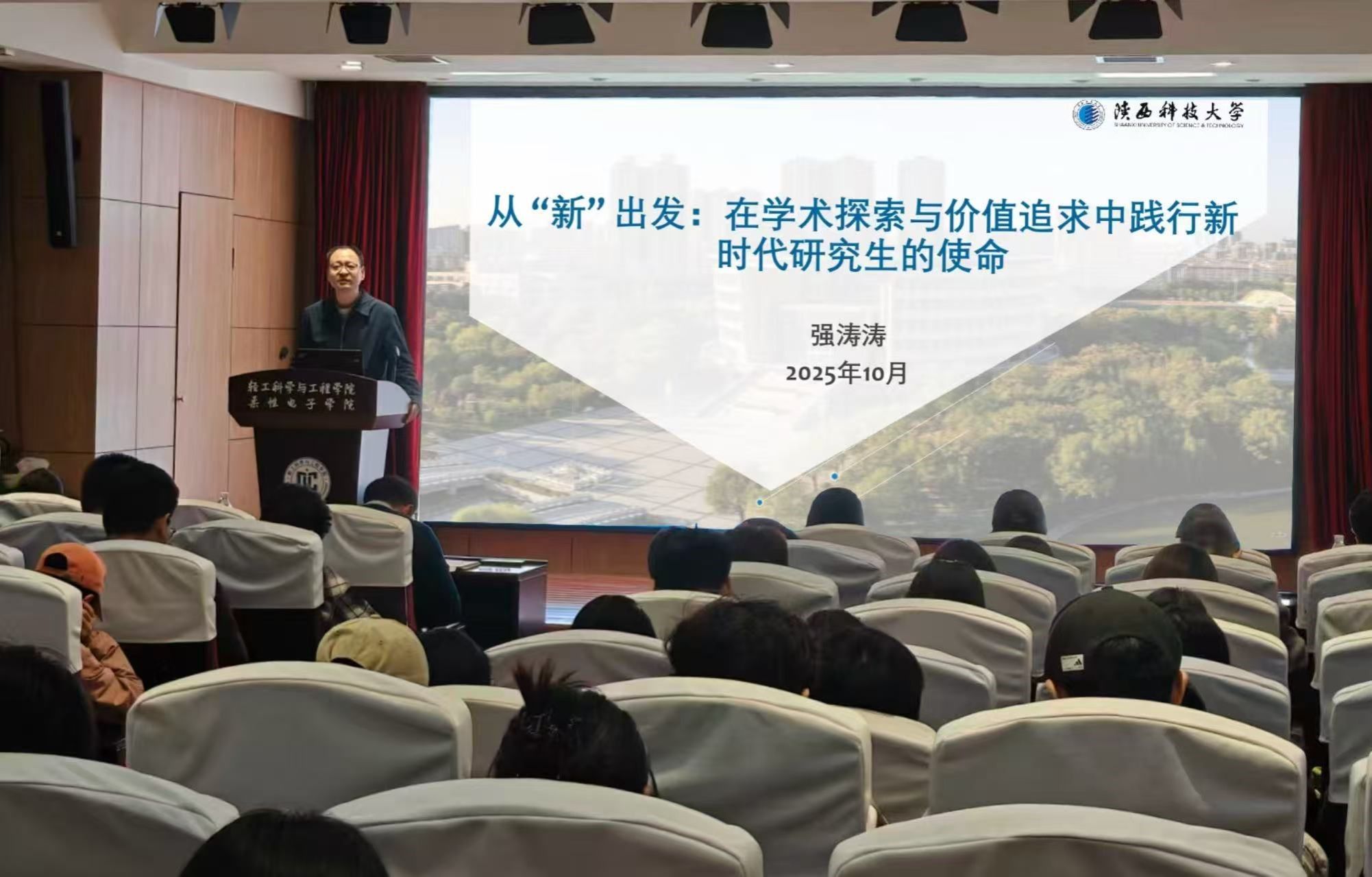 新學(xué)期以來(lái),一場(chǎng)別開(kāi)生面的“開(kāi)學(xué)第一課”在陜西科技大學(xué)掀起熱潮,報(bào)告廳里陸續(xù)迎來(lái)了一批特別的“主講人”——全體校領(lǐng)導(dǎo)和相關(guān)黨政部門(mén)負(fù)責(zé)人、各學(xué)院(部)黨政班子成員。他們走上講臺(tái),用親切的語(yǔ)言、深刻的思考和身邊的故事,為全體新生帶來(lái)一場(chǎng)深刻的思想淬煉,將家國(guó)情懷、輕工使命與奮斗精神深植學(xué)生心中。