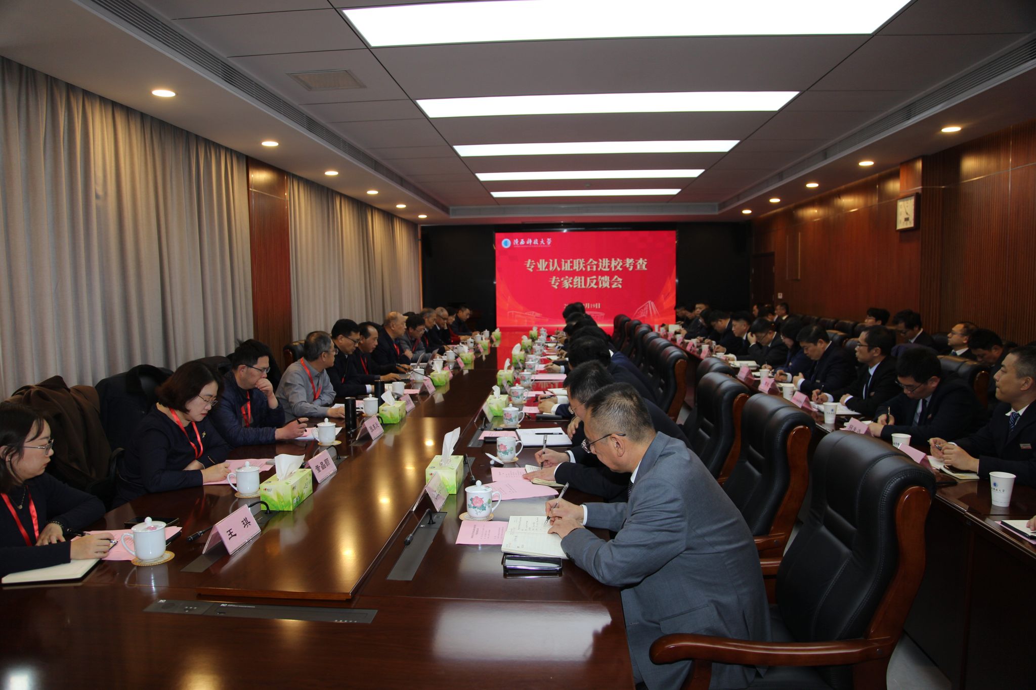12月18日上午,學(xué)校召開專業(yè)認(rèn)證聯(lián)合進(jìn)??疾閷<乙娒鏁?huì)。專家組全體成員,校長黃劍鋒,副校長費(fèi)貴強(qiáng)、陸趙情出席會(huì)議,黃劍鋒和陳鶴鳴分階段主持會(huì)議。