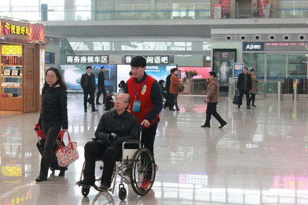 今年是我校參與全國鐵路春運(yùn)志愿服務(wù)的第四個(gè)年頭。1月26日,我校青年志愿者在西安鐵路北站正式展開春運(yùn)“暖冬行動”志愿服務(wù)。他們的身影遍布車站廣場、售票大廳、安檢閘口、候車室等地,為旅客購票、取票提供咨詢服務(wù),為老弱病殘?jiān)新每吞峁┍憷麕椭?,為旅客進(jìn)出站提供快捷引導(dǎo)等。面對每天從上午8:30到下午4:30的高強(qiáng)度服務(wù)工作,志愿者們克服寒冷感冒、長時(shí)間站立或來回奔波等困難,積極主動、熱情周到,忙碌而有序、匆忙而又溫暖,展示了我校大學(xué)生精神面貌,出色完成了志愿服務(wù)工作,讓小紅帽成為鐵路北站一道亮麗的風(fēng)景線。截止3月5日活動結(jié)束,志愿者們已累計(jì)服務(wù)時(shí)長16000余小時(shí)。