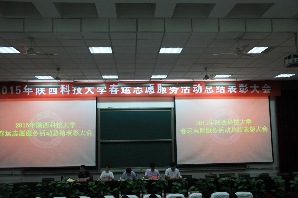 5月20日下午,2015年陜西科技大學(xué)春運(yùn)志愿服務(wù)活動(dòng)總結(jié)表彰大會(huì)在3號(hào)教學(xué)樓學(xué)術(shù)報(bào)告廳舉行。西安鐵路局團(tuán)委副書記趙勇、西安鐵路局北站團(tuán)委書記張清清等,我校團(tuán)委負(fù)責(zé)人、春運(yùn)志愿者全體成員和各學(xué)院青年志愿者團(tuán)代表參加本次表彰會(huì),會(huì)議由校團(tuán)委孫敏主持。
