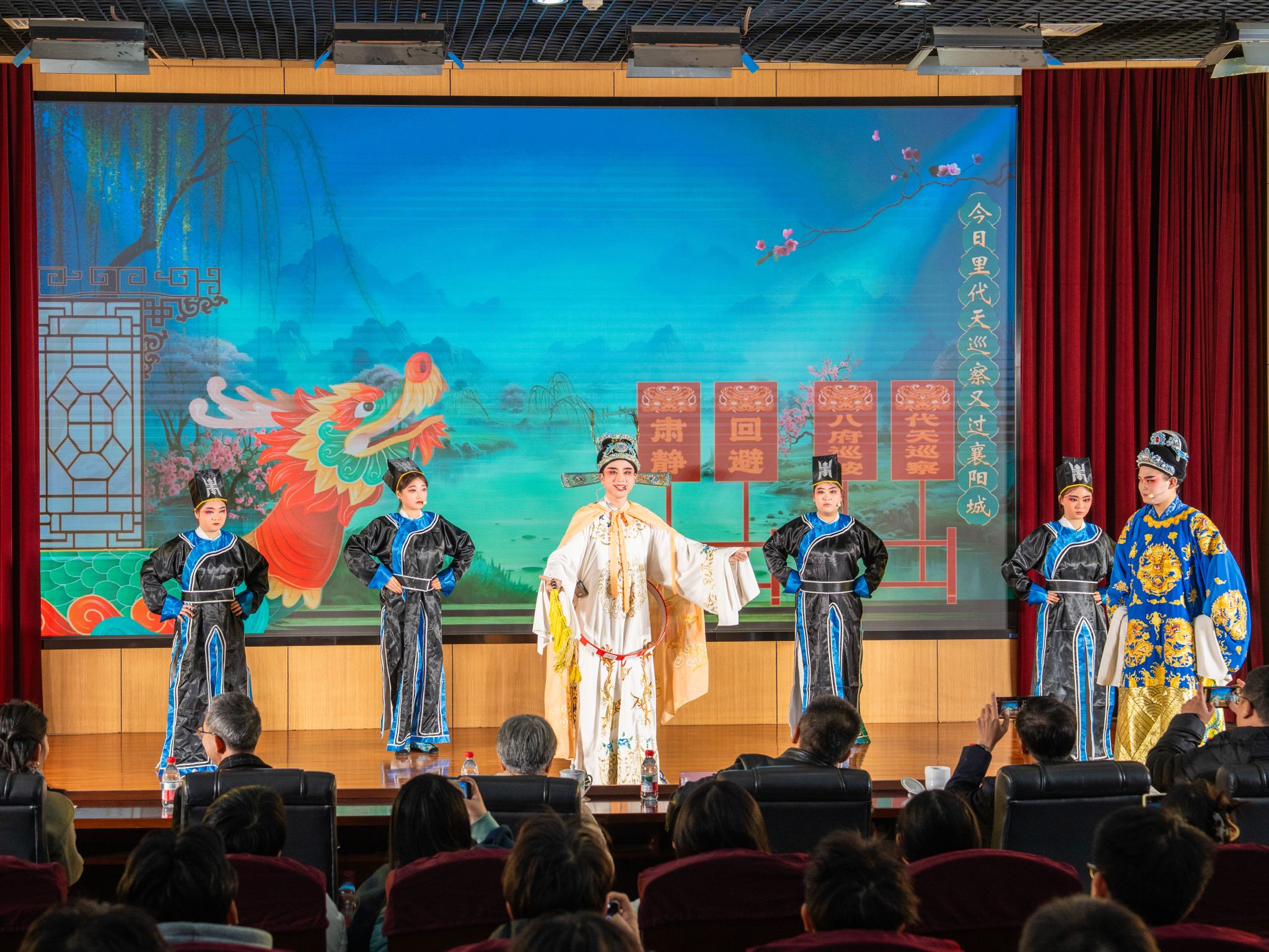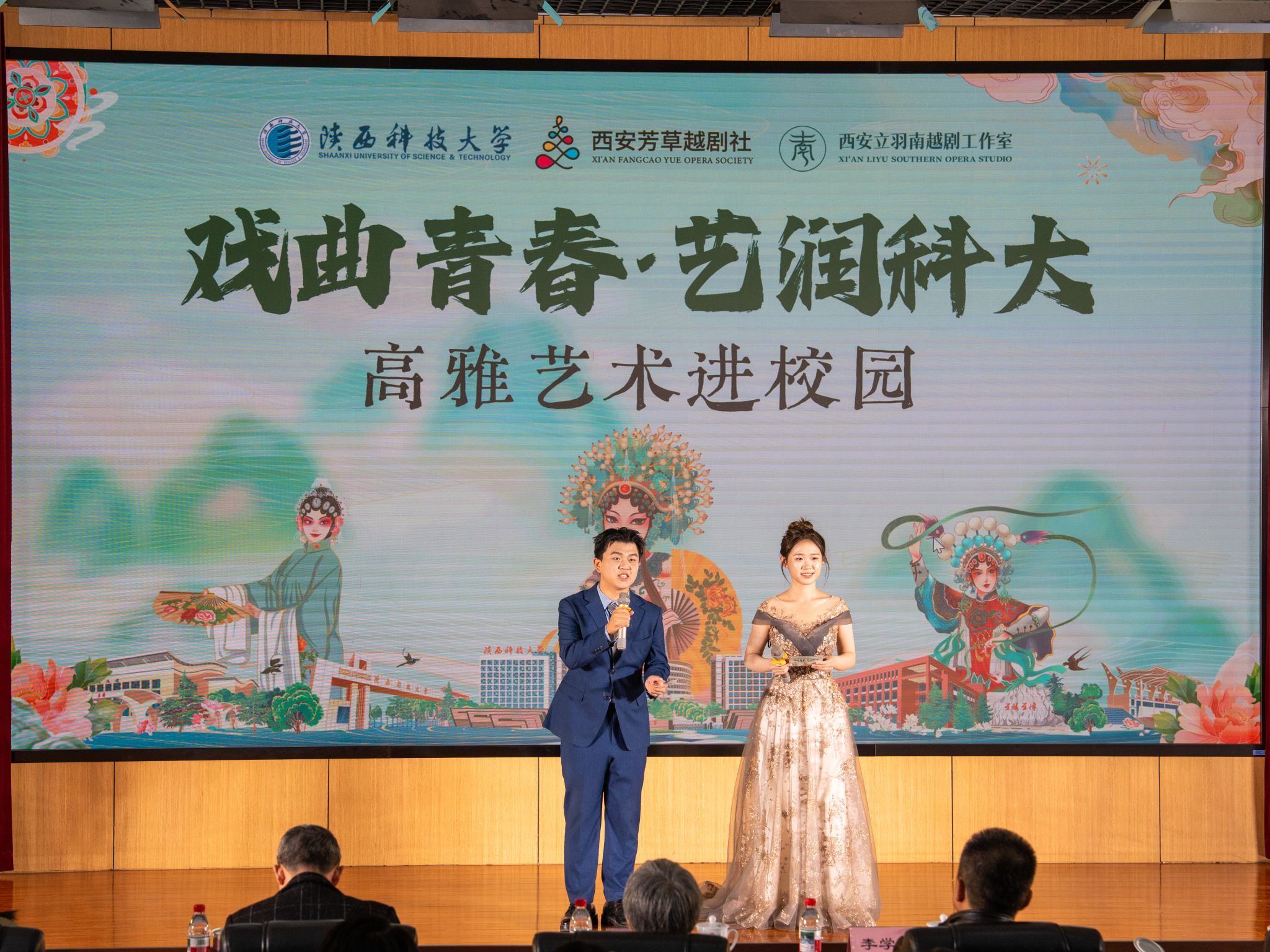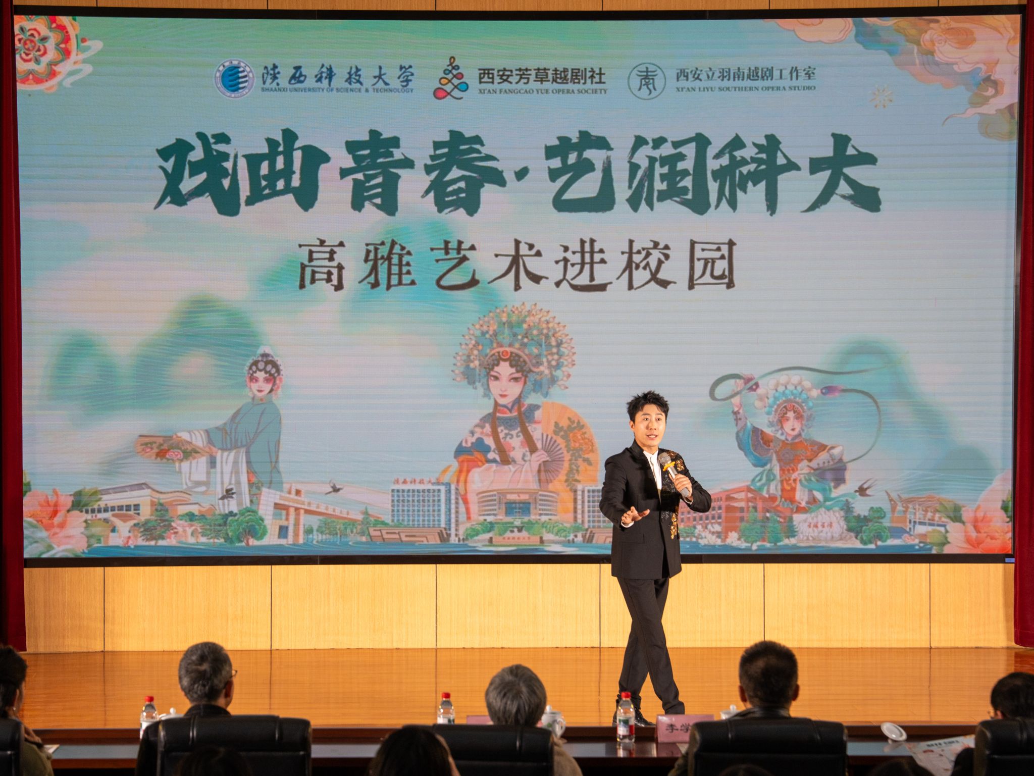 為深入學(xué)習(xí)貫徹習(xí)近平文化思想,響應(yīng)美育浸潤(rùn)行動(dòng)部署,讓青年學(xué)子近距離感受中華戲曲藝術(shù)的魅力,12月11日晚,由黨委宣傳部、校團(tuán)委聯(lián)合舉辦的“戲曲青春·藝潤(rùn)科大”高雅藝術(shù)進(jìn)校園活動(dòng)在學(xué)校圖書(shū)館學(xué)術(shù)報(bào)告廳舉辦?;顒?dòng)特邀西安芳草越劇社、西安立羽南越劇工作室聯(lián)袂,為師生送上一場(chǎng)視聽(tīng)盛宴。校領(lǐng)導(dǎo)、相關(guān)職能部門(mén)負(fù)責(zé)人、校友代表、師生代表等500余人觀看演出。