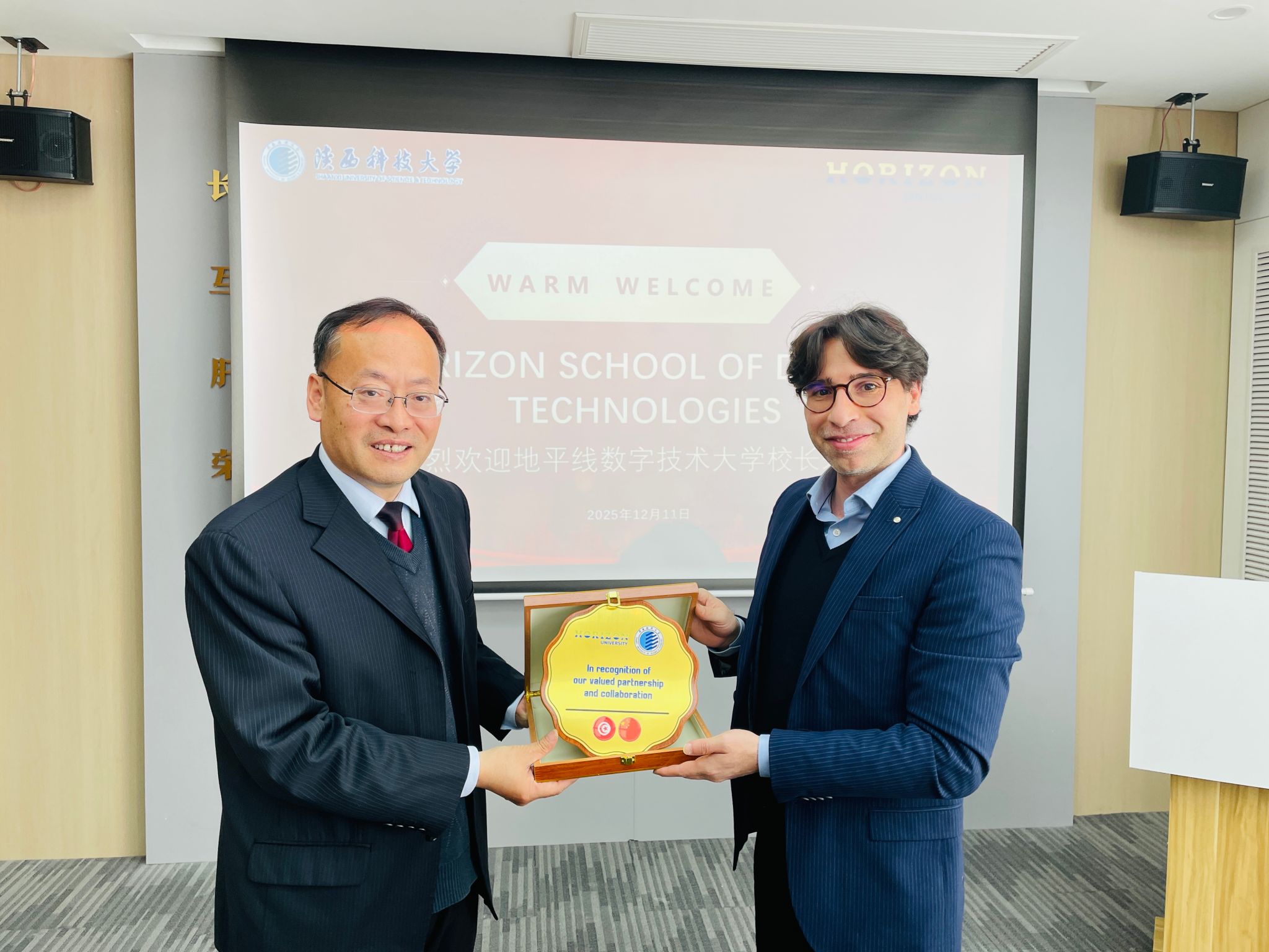 12月11日上午,突尼斯地平線數(shù)字技術(shù)大學(xué)校長(zhǎng)Sami Yangui到訪陜西科技大學(xué),副校長(zhǎng)黃海峙會(huì)見(jiàn)來(lái)賓。國(guó)際交流與合作處處長(zhǎng)張素風(fēng)主持座談會(huì),經(jīng)濟(jì)與管理學(xué)院副院長(zhǎng)石乘齊、教師李雷,電氣與控制工程學(xué)院外事秘書(shū)楊雅斐,電子信息與人工智能學(xué)院外事秘書(shū)魏楠等參與座談。