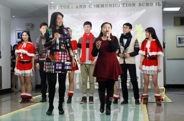 臨近期末,文化傳播學(xué)院舉辦了一場(chǎng)別開生面的“2014跨年音樂會(huì)”,2013級(jí)播音與主持藝術(shù)專業(yè)眾學(xué)子既是主演又是考生,他們用精彩的歌舞表演為聲樂課結(jié)業(yè)交上一份滿意答卷,同時(shí)和參演老師們一起表達(dá)了新年到來的期盼和對(duì)學(xué)校、祖國(guó)的祝福之情。