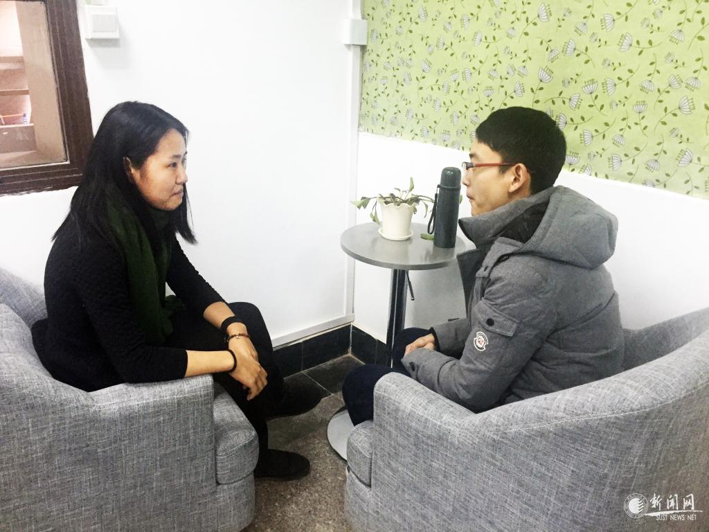 王佳瑜老師(左)和學(xué)生談心