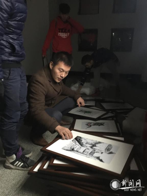任歡老師(中)和學(xué)生一起張貼宿舍標(biāo)識(shí)