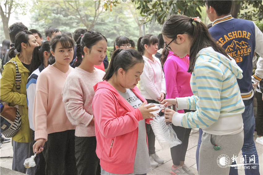 一年一度的“體測季”又開始了。大三、大四年級體測將要陸續(xù)在10月的周六周日舉行。大一、大二年級體測也將在十月份的體育課上進行。測試的項目有身高、體重、肺活量、立定跳遠、坐位體前屈、50米短跑、引體向上(男生)、1000米長跑(男生)、仰臥起坐(女生)、800米長跑(女生)。下面,讓我們隨著鏡頭來看看這次體測的情況吧。標準田徑場外公布了體測的項目以及達標要求進行肺活量測試的班級正在分發(fā)吹嘴在田徑場東看臺下進行的肺活量測試身高體重測量坐位體前屈測試在標準田徑場進行的立定跳遠測試男子1000米測試