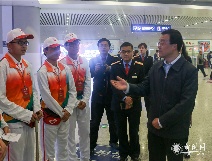 在第十一屆中國藝術(shù)節(jié)即將開幕之際,共青團陜西省委書記、第十一屆中國藝術(shù)節(jié)陜西省工作指揮部志愿者工作部部長段小龍,陜西廣播電視臺副臺長、黨委副書記安平,共青團陜西省委志愿者工作部副部長胡曉彤等一行于10月13日下午來到西安咸陽國際機場、西安北客站,慰問我校正在此地進行現(xiàn)場服務(wù)的127名大學(xué)生志愿者。