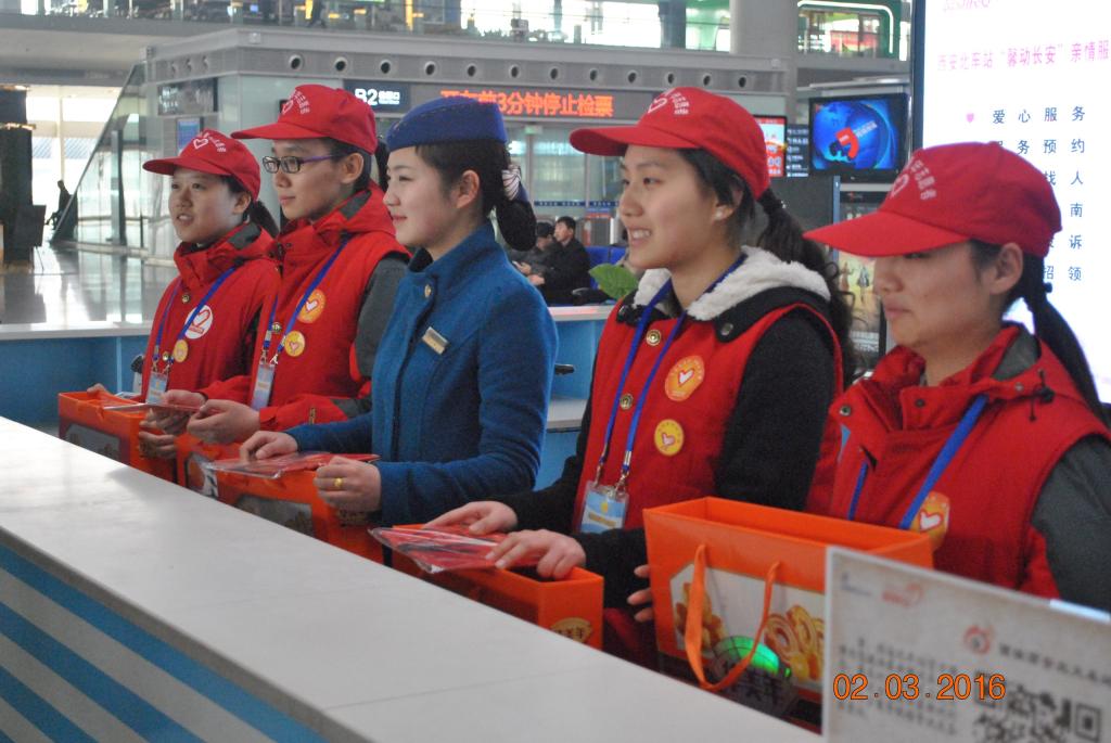 2月3日下午4時(shí),團(tuán)省委副書(shū)記單舒平、校黨委副書(shū)記溫鋒一行來(lái)到西安鐵路局西安北站,慰問(wèn)在這里參加春運(yùn)志愿服務(wù)的陜科大學(xué)子。自全國(guó)青年志愿服務(wù)春運(yùn)——“暖冬行動(dòng)”在西安北站啟動(dòng)起,我校共組織60名在校大學(xué)生參加此次春運(yùn)志愿服務(wù)。