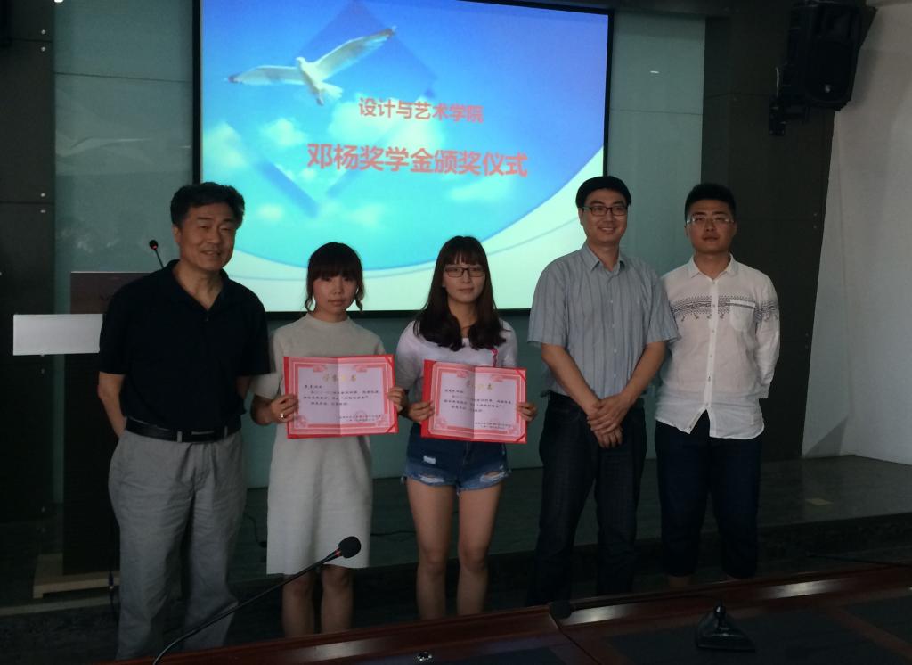 我校首個由在校學生設立的個人獎學金“鄧楊獎學金”6月9日上午在設計與藝術學院學術報告廳舉行頒獎儀式。2名設藝學院2012級學生從院黨委書記陳滿儒及獎金設立人鄧楊手中接過頒獎證書及獎金,讓她們在繁忙的學業(yè)中感覺到了畢業(yè)學長的關心和幫助。