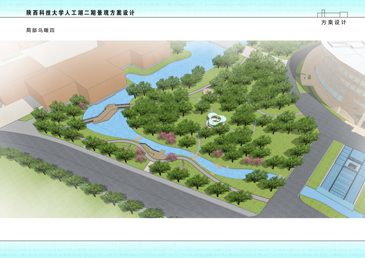 人工湖二期圖書館東北側(cè)鳥瞰效果圖