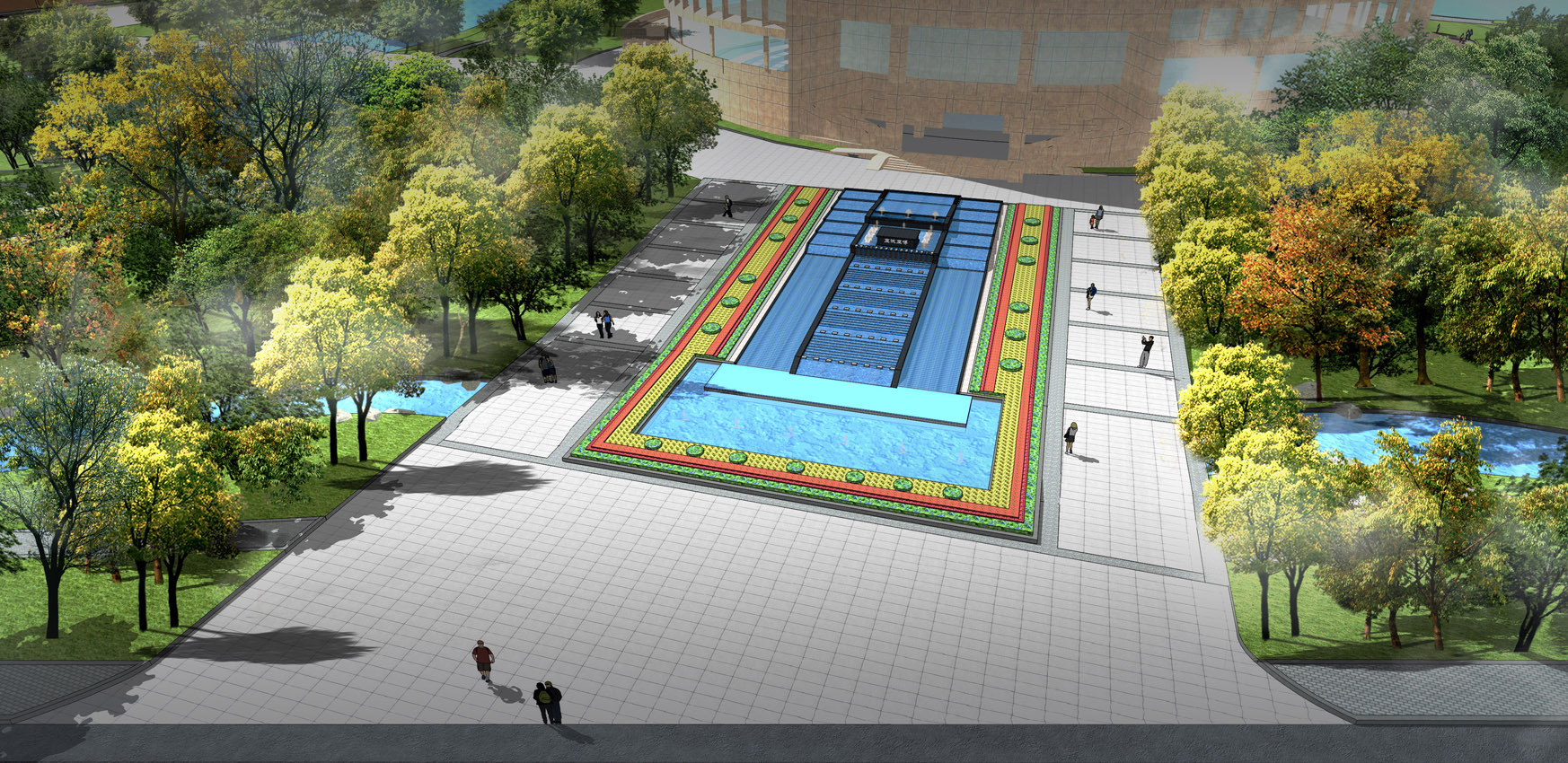 二是圖書館北側(cè)和北環(huán)道的南側(cè)埋設(shè)有給水、熱力、電力、消防、污水管道,設(shè)計(jì)時(shí)要避開這些管道,同時(shí)結(jié)合現(xiàn)有的地形條件,對(duì)湖面進(jìn)行了某些地方收縮、某些地方開放的調(diào)整,既要保護(hù)原有管道還要考慮湖南側(cè)山體的開挖量要少。