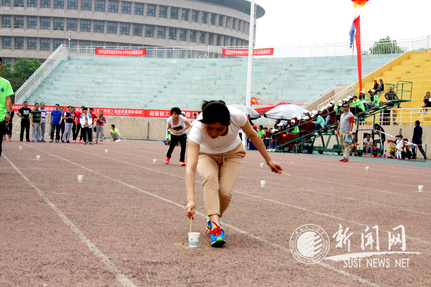 教工青年組于上午10:32舉行了男女10人插秧收割,共14隊,分四組進行。男女教師各五人分站兩端,中間是用小紙杯組成的“稻田”。女教師跑過去把竹簽插入小杯中,男教師接力后則需要把竹簽從中地抽出,不能使紙杯翻倒,否則視為無效,直到輪流完畢。一名比賽完的教師表示:“趣味性項目讓我們教工在運動會上也一展風采,大家共聚一堂,增進了教師情誼,團隊精神也得到了體現(xiàn)。希望青年學子能乘著年輕好好鍛煉身體,為以后的工作打下良好的身體基礎?!?br />