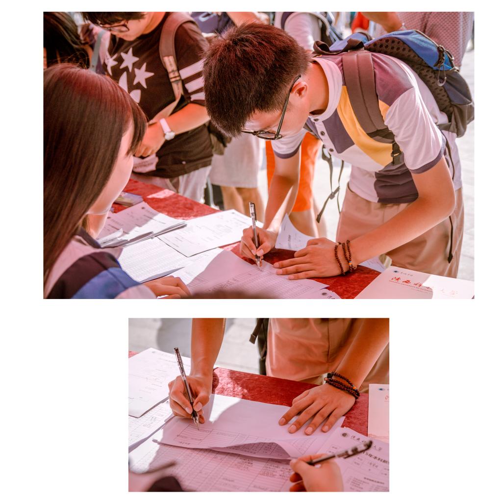 鄭晨燁一踏上迎新大道,穿著校服、佩戴新生接待工作證的迎新志愿者們就迎上前來,問他是哪個(gè)學(xué)院的,需不需要幫什么忙。在感謝了志愿者們之后,他由衷地感慨道:“太熱情了!”。隨后,走過被他形容為“像穿過兩道城墻”似的12個(gè)學(xué)院的新生及家長接待處帳篷,鄭晨燁很快就找到了自己的學(xué)院。