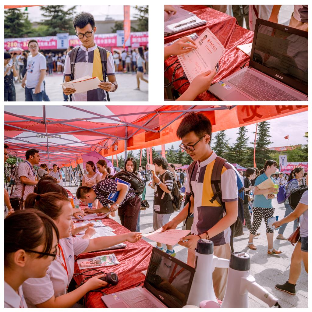 稍作休息后,鄭晨燁當(dāng)天下午拿著錄取通知書,直奔管理學(xué)院新生接待帳篷。學(xué)長學(xué)姐們早已坐在辦公桌后,精神抖擻地做好了一切的接待準(zhǔn)備。這邊一位學(xué)姐詢問了他的專業(yè)后,很快對他進(jìn)行了報(bào)名資格審查,并為他在工商管理專業(yè)接待處注冊信息;那邊另一位學(xué)姐遞給他一份報(bào)名表,并指導(dǎo)他填寫;最后,貼心的學(xué)長為他準(zhǔn)備好了“一卡通”和裝著入學(xué)指南的袋子,里面裝有一本《大學(xué)導(dǎo)航》、一份為新生解惑的《科奕》報(bào)紙、一張科大的地圖和其他的一些東西。