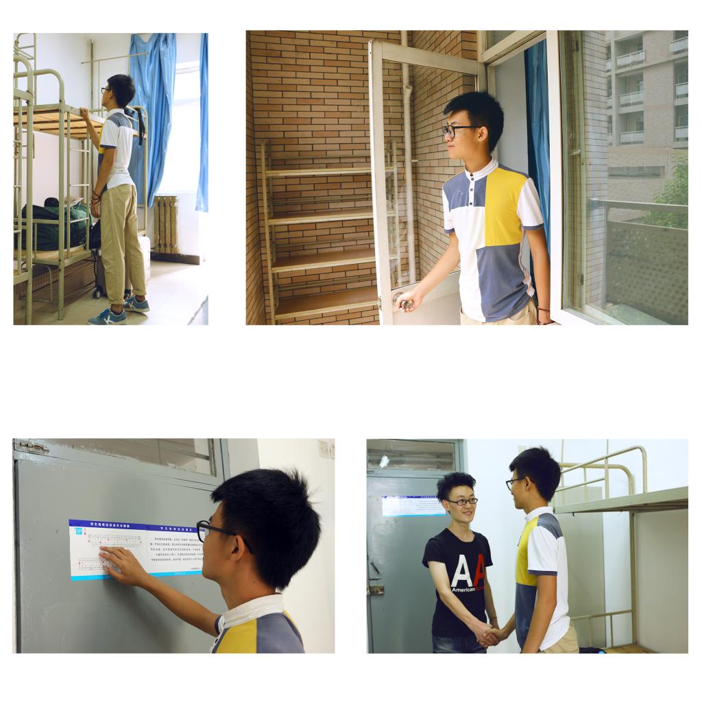 推開B305宿舍門,鄭晨燁發(fā)現(xiàn)自己是第一個(gè)到的。從沒有住過宿舍的他,左看看、右摸摸,對一切都很新奇。3張上下床,他選擇了下鋪靠窗的位置,拉開窗簾,外面陽光明媚。正在歡喜間,一位瘦瘦的男生推門而入,“你是周偉吧,我是鄭晨燁,你好!”原來,他倆早在報(bào)到之前,通過學(xué)校在網(wǎng)上的新生群就互相認(rèn)識了。此時(shí),兩個(gè)熟悉的陌生人將手緊緊握在了一起。