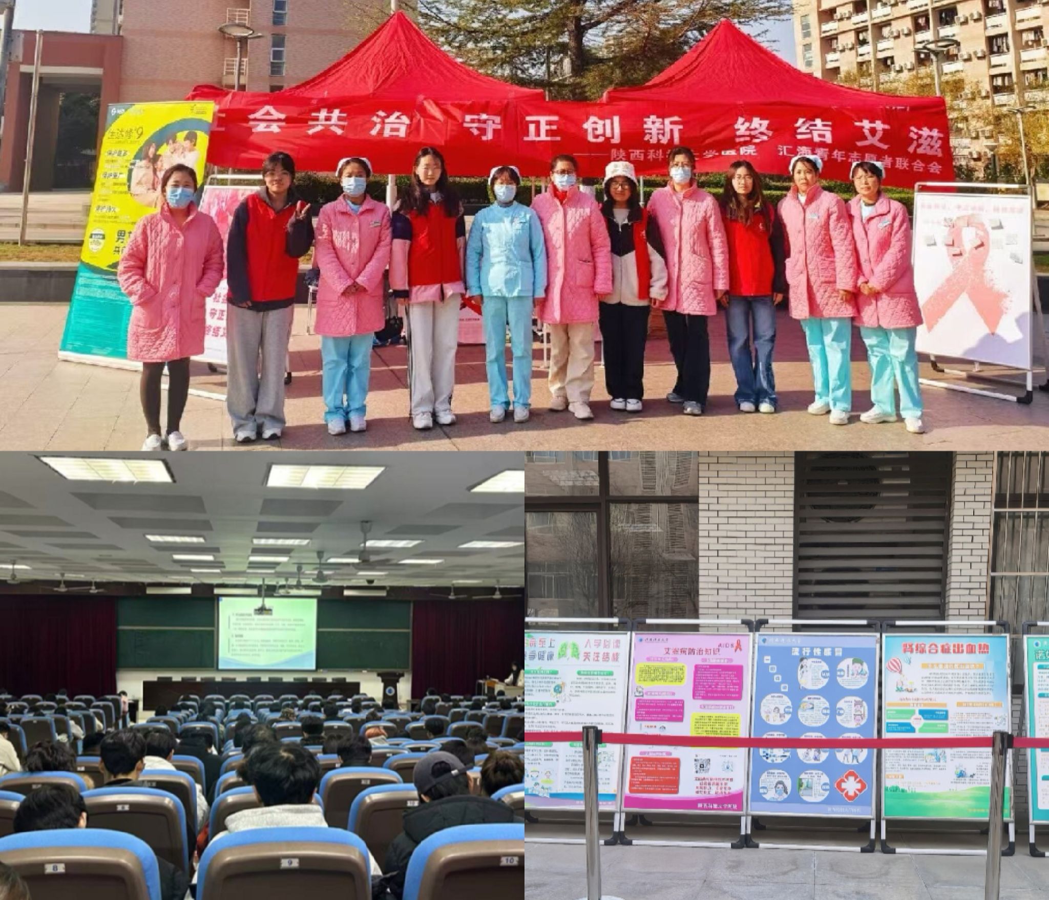 針對冬春季諾如病毒、流感、水痘等傳染病高發(fā)的特點(diǎn),后勤服務(wù)集團(tuán)多措并舉開展防控知識(shí)宣傳,通過發(fā)放宣傳單、布置專欄、舉辦講座和現(xiàn)場活動(dòng)等多種形式,向師生宣傳防治要點(diǎn)。11月17日,邀請未央?yún)^(qū)疾控中心專家來校舉辦校園傳染病防控專題培訓(xùn);12月1日“世界艾滋病日”,校醫(yī)院聯(lián)合匯海青年志愿者聯(lián)合會(huì)舉辦“社會(huì)共治 守正創(chuàng)新 終結(jié)艾滋”主題宣傳活動(dòng)。積極運(yùn)用微信公眾號(hào)、短視頻等新媒體平臺(tái),發(fā)布《流感防控與應(yīng)對指引》推文,并制作了“消毒指導(dǎo)意見”“各種濃度含氯消毒液的配置方法”等實(shí)用短視頻,指導(dǎo)師生科學(xué)防護(hù)。