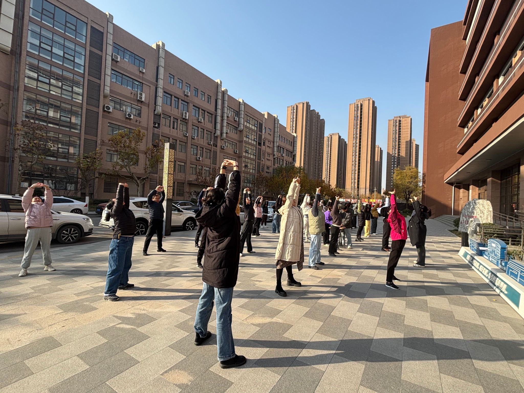 本次活動(dòng)由學(xué)院統(tǒng)一部署,學(xué)院工會(huì)、研究生會(huì)協(xié)同實(shí)施,面向全院師生,在學(xué)院樓南側(cè)廣場(chǎng),開展工作日十分鐘的八段錦練習(xí),由專業(yè)人員開展動(dòng)作規(guī)范培訓(xùn)與現(xiàn)場(chǎng)指導(dǎo),確保練習(xí)科學(xué)性與安全性。在為期一個(gè)月的活動(dòng)中,累計(jì)參與800余人次,涵蓋碩士生、博士生及教職員工,實(shí)現(xiàn)了跨年級(jí)、跨課題組的參與,搭建了輕松自然的交流平臺(tái),促進(jìn)了師生互動(dòng)與情感聯(lián)結(jié),使導(dǎo)學(xué)關(guān)系從學(xué)術(shù)指導(dǎo)延伸至生活關(guān)懷,構(gòu)建起“以練促融、以動(dòng)凝心”的育人生態(tài),引導(dǎo)廣大師生養(yǎng)成積極健康的科研生活方式。