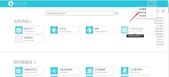 6、為了您的帳號安全,在退出“WebVPN系統(tǒng)”時,請點擊右上角“退出登錄”選項,再關(guān)閉界面。