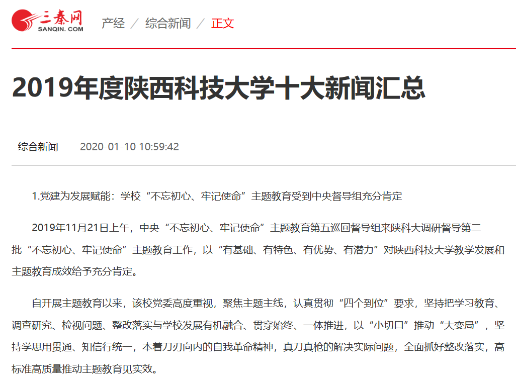 三秦網(wǎng):2019年度陜西科技大學(xué)十大新聞匯總