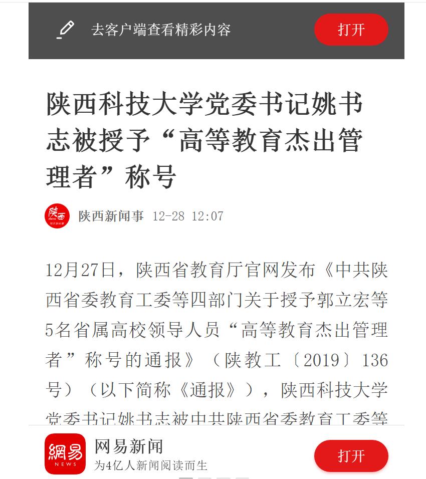 網(wǎng)易新聞APP:陜西科技大學(xué)黨委書記姚書志被授予“高等教育杰出管理者”稱號(hào)