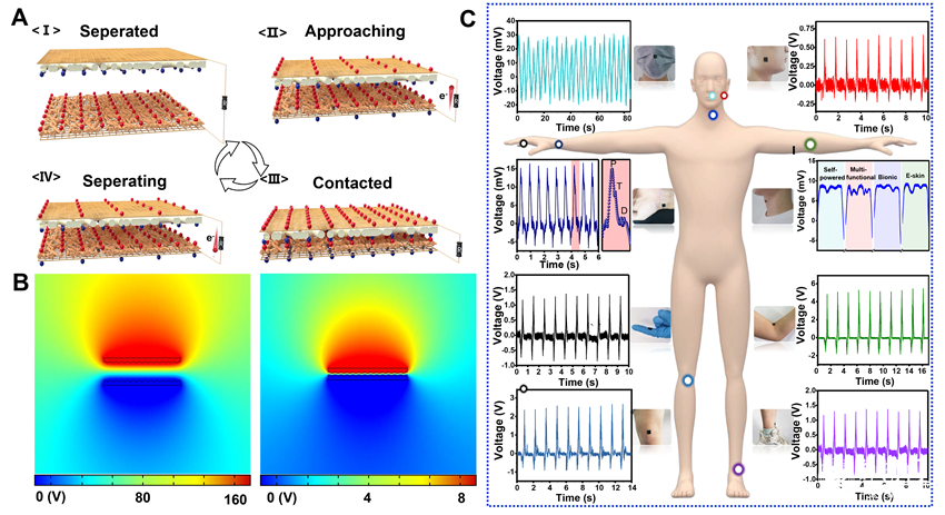 圖2電子皮膚轉(zhuǎn)化機(jī)械能為電能為溫度和濕度檢測提供能源