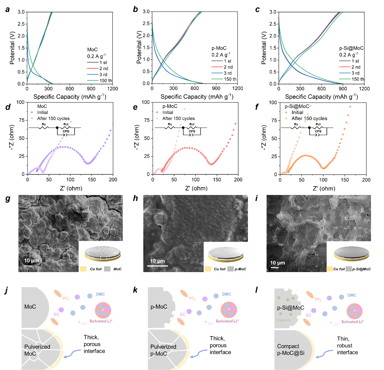 要點二:超低含量摻雜有效地誘導Si在p-Si@MoC中最大容量利用率