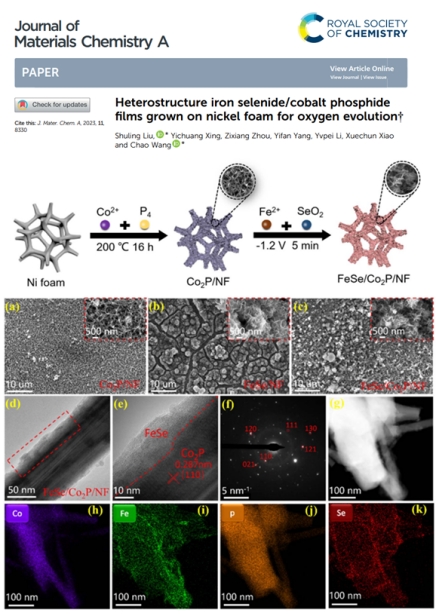 [16] Shuling Liu, Yichuang Xing, Zixiang Zhou, Yifan Yang, Yvpei Li, Xuechun Xiao, Chao Wang. Heterostructure iron selenide/cobalt phosphide films grown on nickel foam for oxygen evolution, Journal of Materials Chemistry A, 2023, 11(15): 8330-8341.