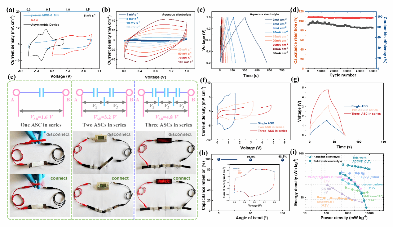 非對(duì)稱超級(jí)電容器電化學(xué)性能及應(yīng)用示意圖
